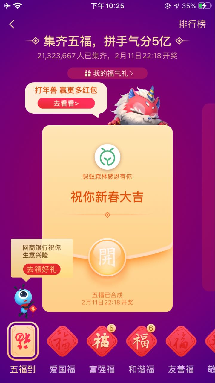 今年的五福集的还蛮快的,看来牛年运气不错啊