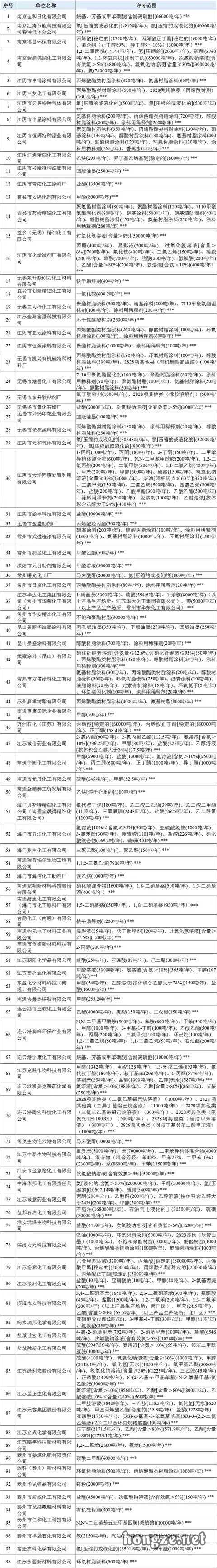 2021年7月1日,江苏省应急管理厅也曾发布公告。根据各设区市应急管理局核实上报,南京佳和日化有限公司等98家危险化学品生产企业,终止危险化学品生产活动。根据《危险化学品生产企业安全生产许可证实施办法》第四十条规定,注销上述企业《危险化学品生产企业安全生产许可证》。