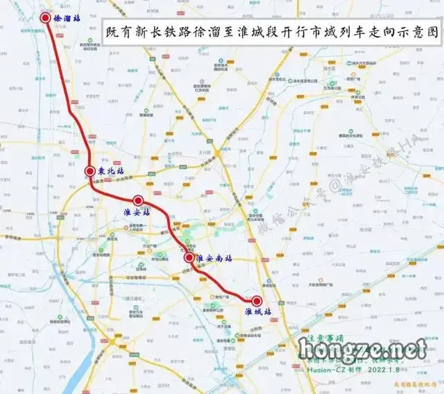 淮安市目前正计划利用既有新长铁路开行市郊列车。计划开行市郊列车的区段为徐溜-淮城段,共设车站5座,前期对沿途徐溜站、袁北站、淮城站进行改造就可以投入使用。