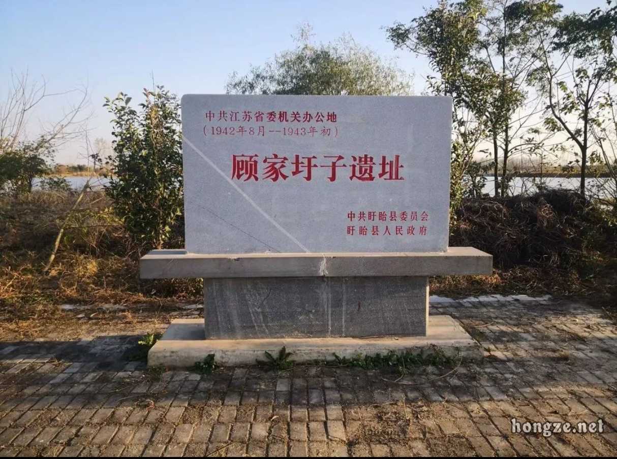 顾家圩子位于今淮安市盱眙县黄花塘镇泥沛社区内,当时地理位置较为独特,处于苏皖两省交界处,东南方向是安徽天长县大通镇,中间原来隔着一条泥沛涧,也就是如今的大通水库。1958年,因修建水库,地势低洼的顾家圩子被淹没于水底,水面属安徽天长县管辖,西岸属盱眙黄花塘镇泥沛村三塘组管辖。水库西北处建有三塘抽水站,三塘向东是仁庄、周庄、维庄,均属盱眙管辖。顾家圩子旧址位于三塘与仁庄相夹之处,据当地村民反映,遇到大旱之年,遗址露出水面,可以看到一地残存的碎砖。