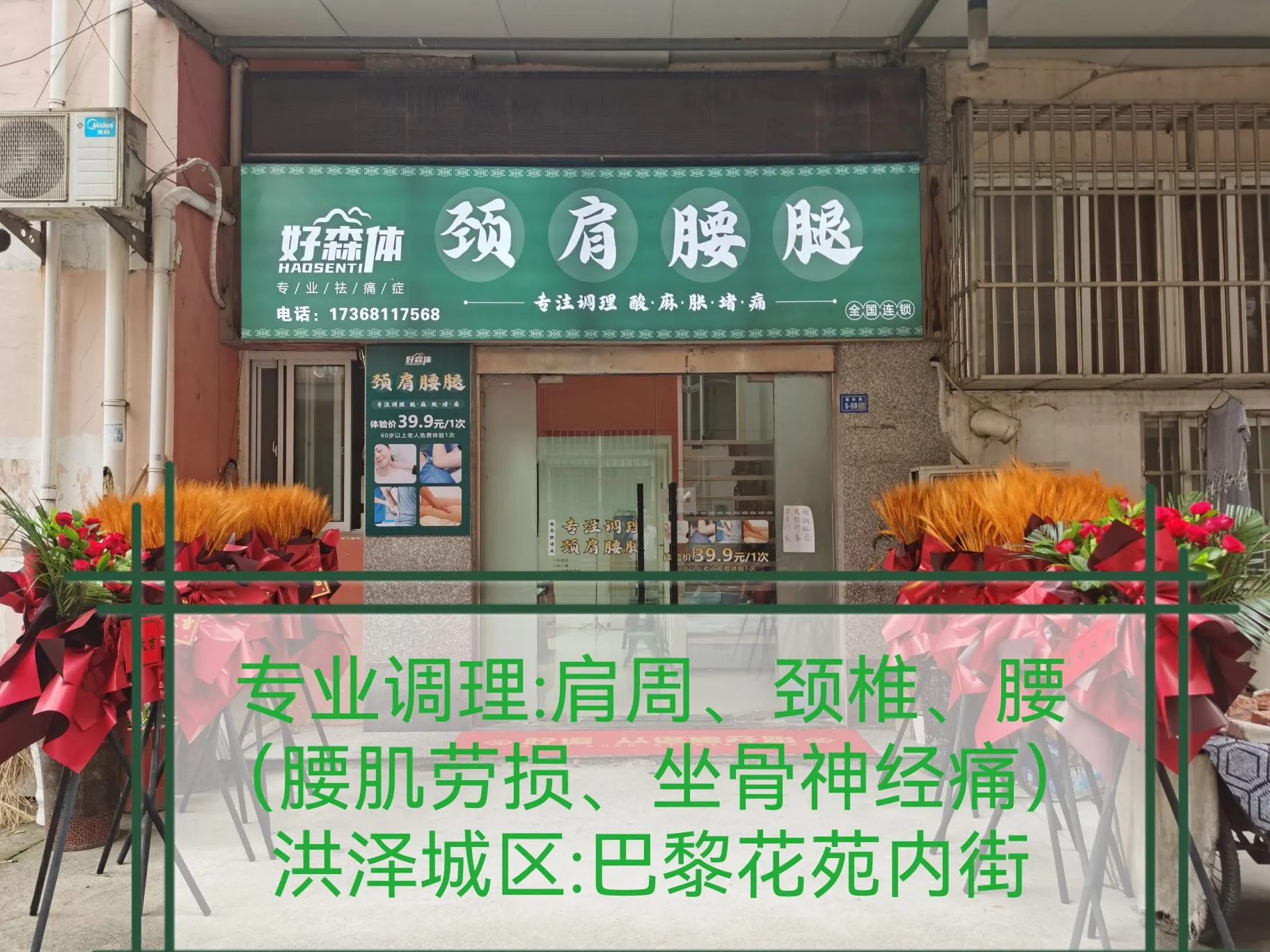 洪泽城区巴黎花苑内街,好森体专注肩、颈、腰、腿调理!疑难痛症调理