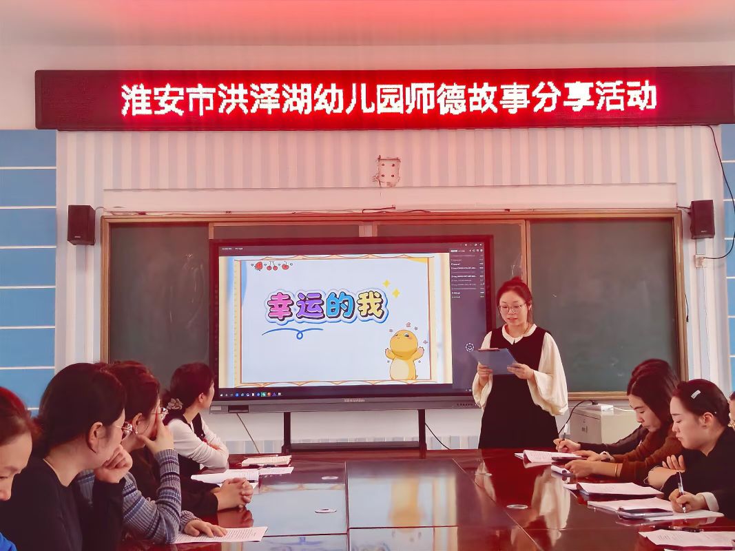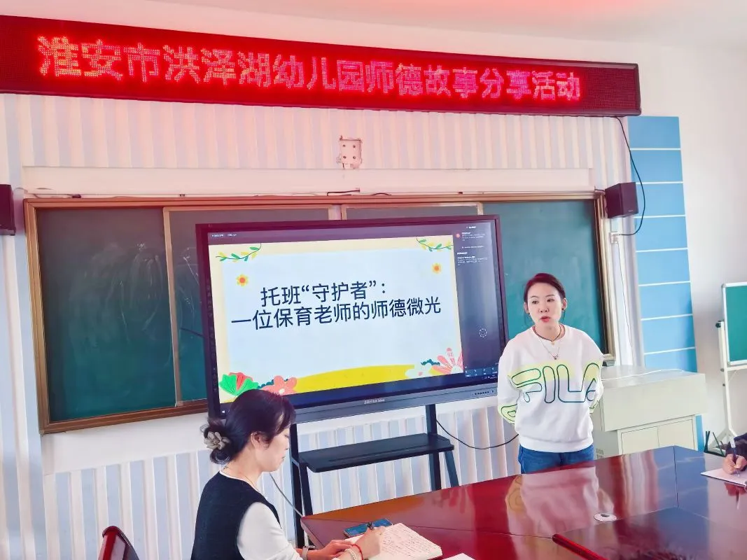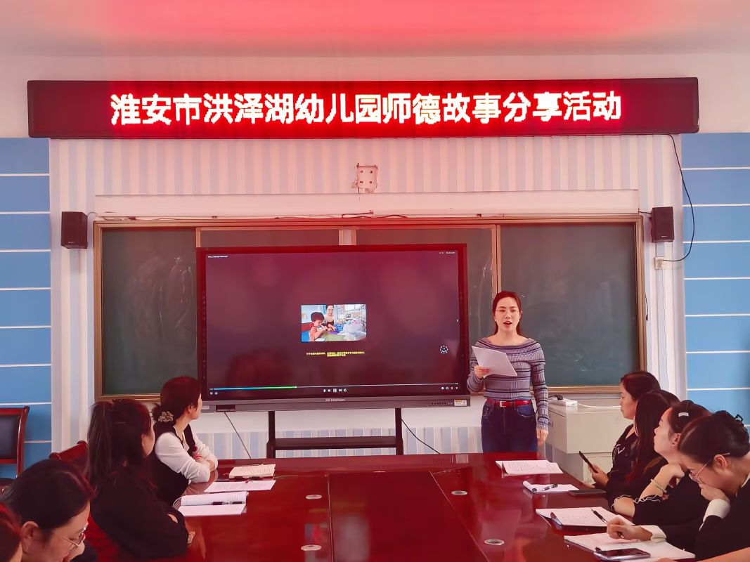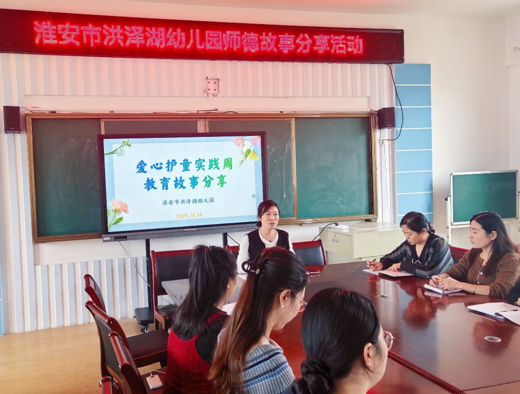 为加强我园师德师风建设,提升教师整体素质,展示教师风采,2025年10月14日中午,淮安市洪泽湖幼儿园以“以爱护童”为主题,开展了师德师风故事分享活动。
