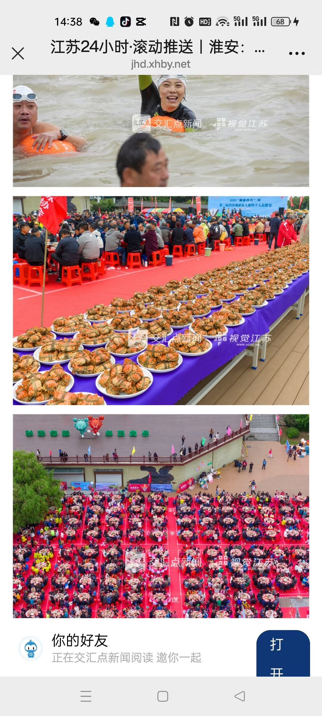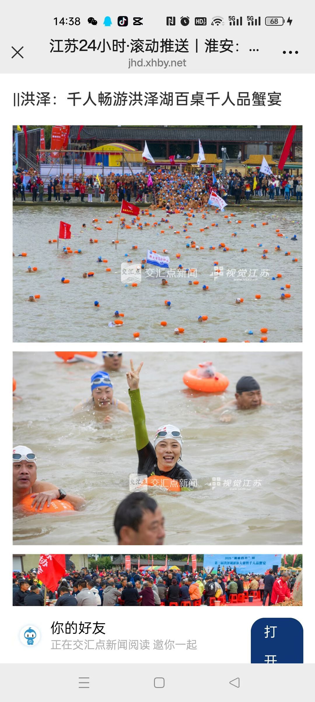 洪泽湖第三届游泳大赛暨千人品蟹宴推动当地旅游升温和消费热潮!