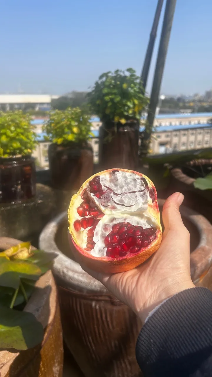 中饭任务完成,吃着石榴享受阳光