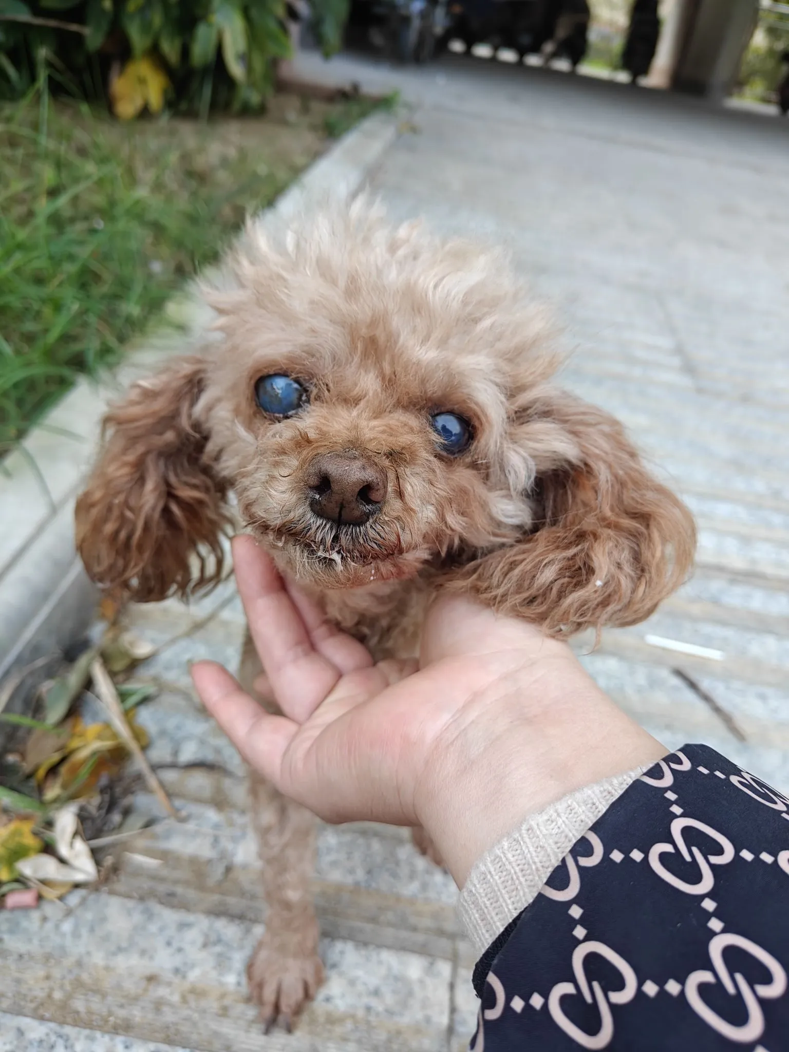 抽烟喝酒烫头 发表于 2025-10-30 17:39 两眼都白内障,右眼应该是完全瞎了,左眼最多能看到一点点。 至少十几岁的老狗了。 多半是被遗弃了。 希望我错了。