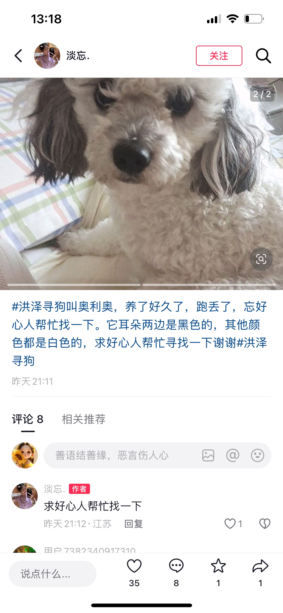 在不 发表于 2025-10-30 18:06 毛发才打理过,应该是走丢,估计主人急疯了,