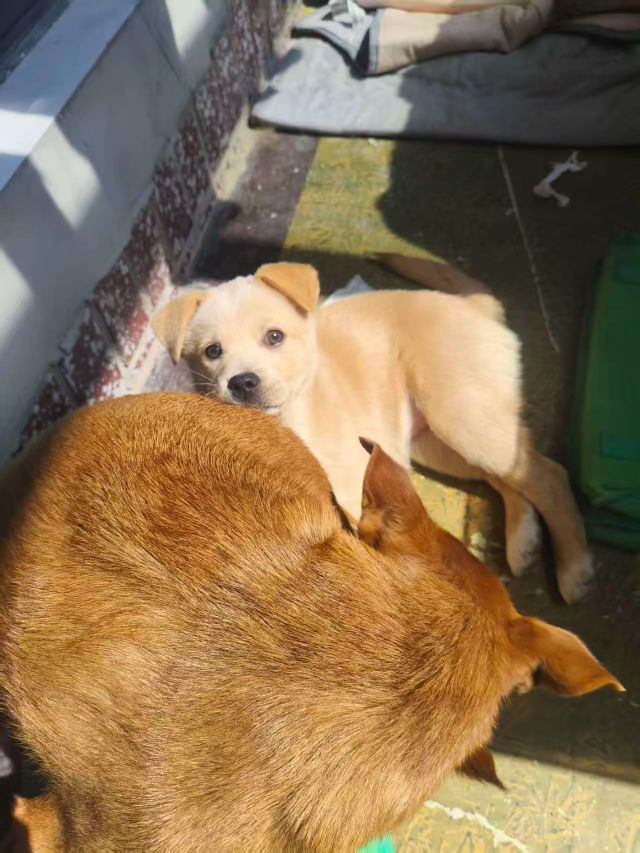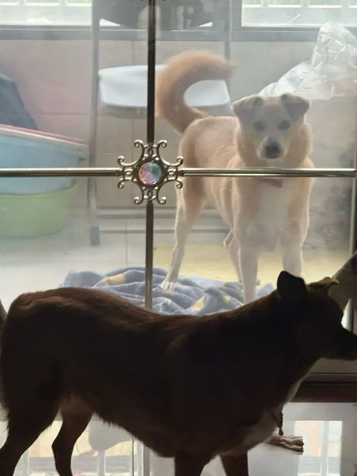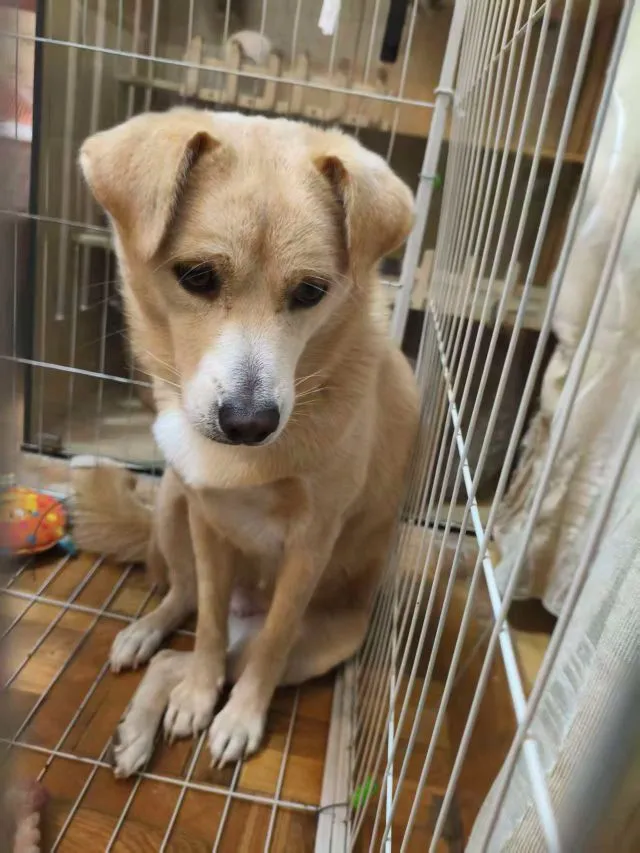 狗狗叫小玉 米黄色背毛胸口白色的
