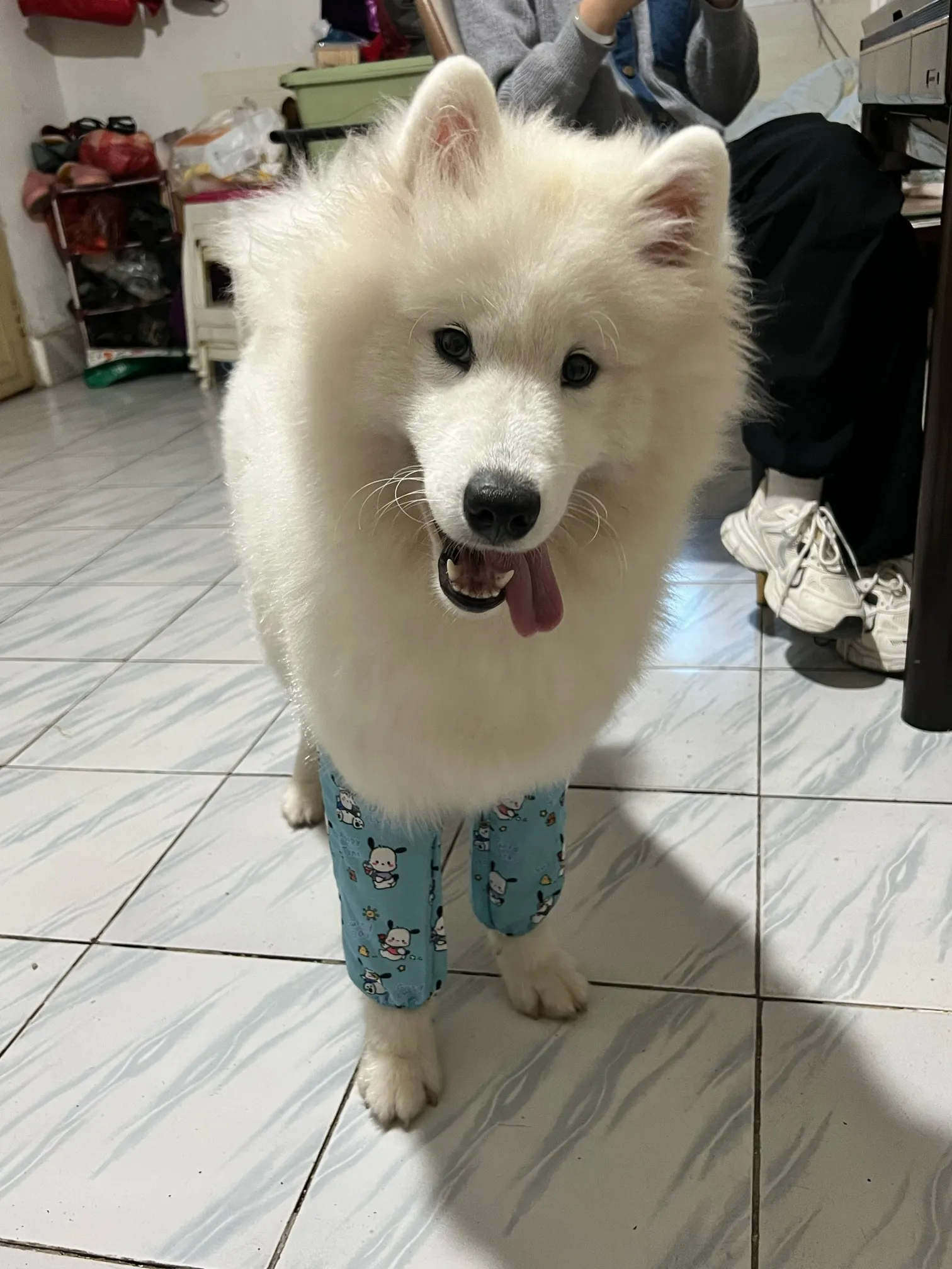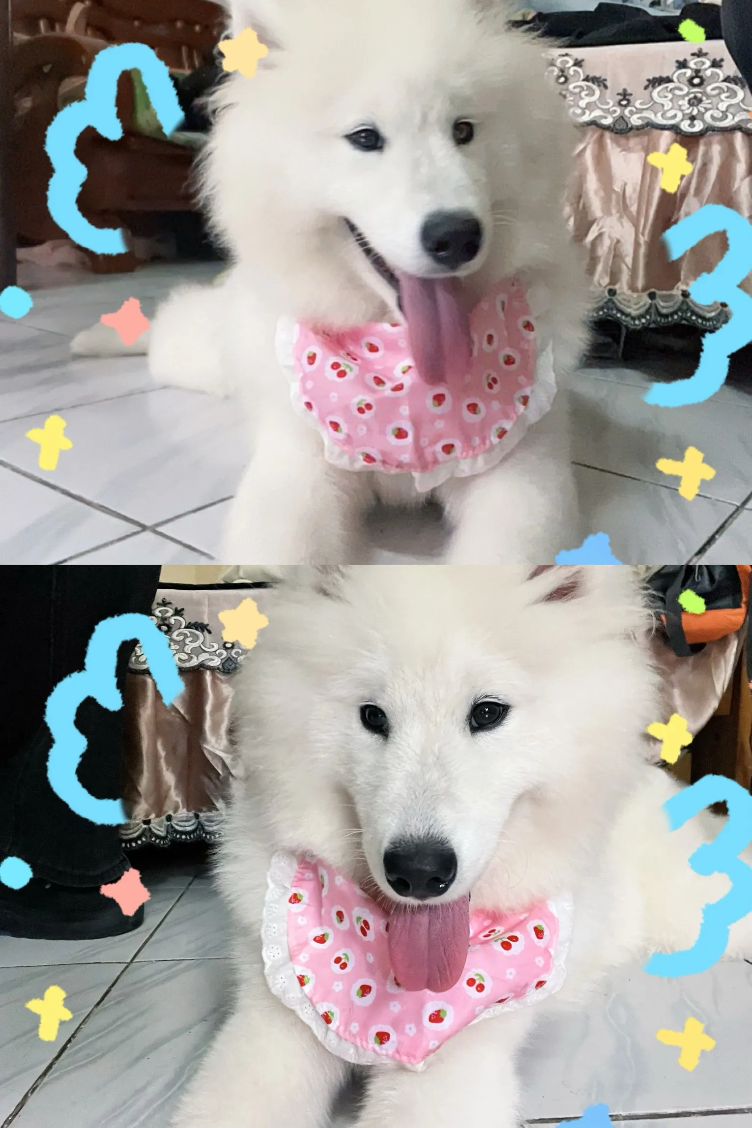 狗是萨摩耶,今年八个月了是母狗!!名字叫白球叫名字有反应的,左边屁股上稍微带点红色,右边舌头上又一块黑斑,11月24号早上六点五十从高良涧中亿花园门口公共厕所附近走丢,找到请与我联系:15365948208、找到必当面酬谢,请大家帮我留意一下!!