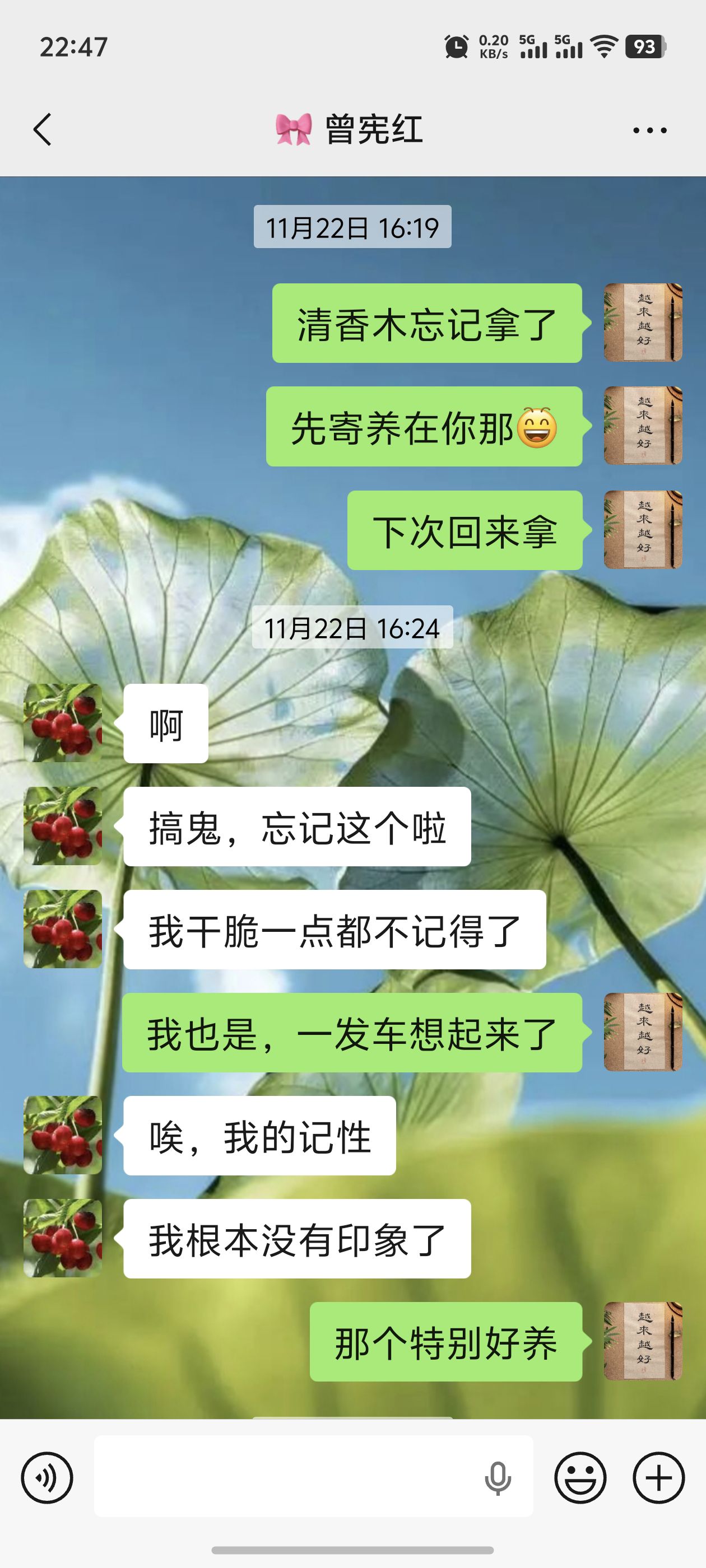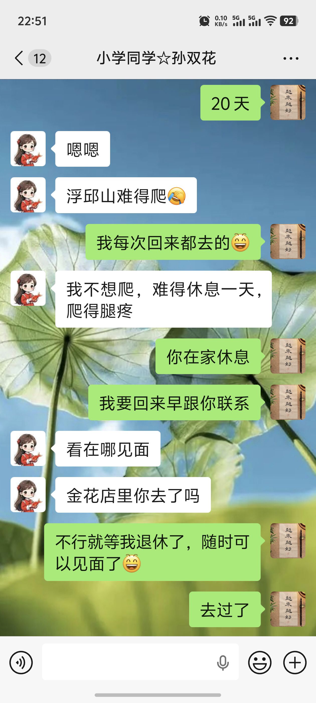 这次回家,最开心的事情还有见到了老屋邻居奶奶,见到了二婶娘。还留下一些念想:圆圆送我的小礼物到底是个啥?亚辉给我的清香木遗忘在宪红车上了,等着我下次回去拿。和文静、双花没来得及见面,她们上班的时候我有时间,她们不忙的时候我有别的事情。特别喜欢雅贤服装店的衣服,可惜不能经常去逛。