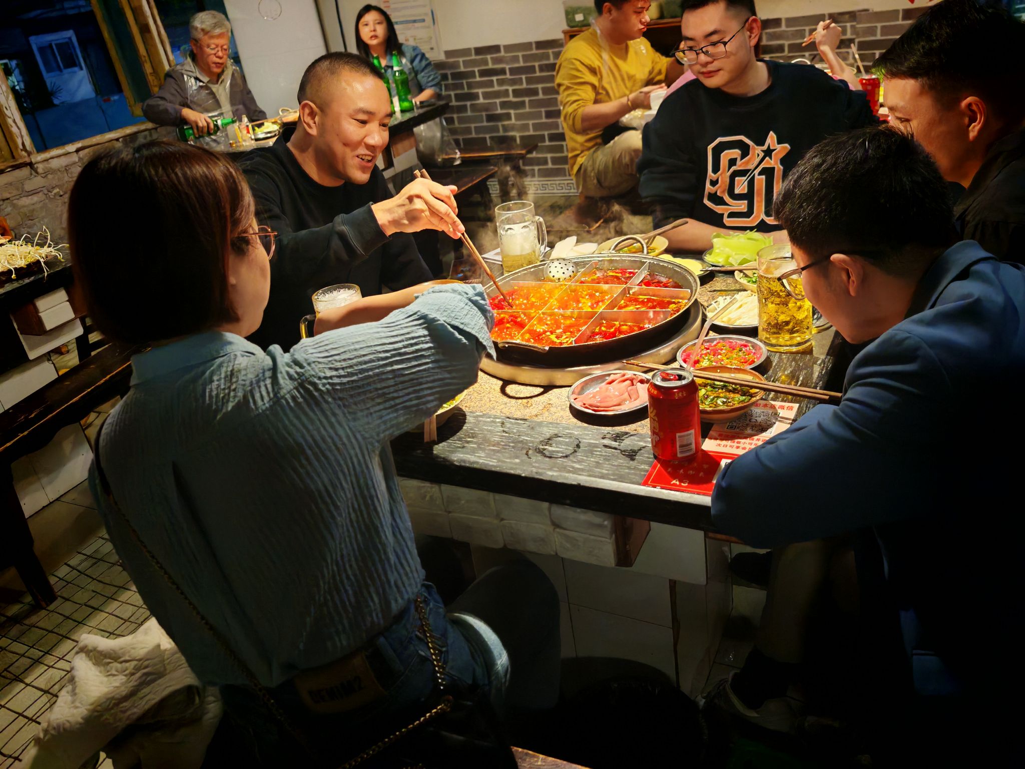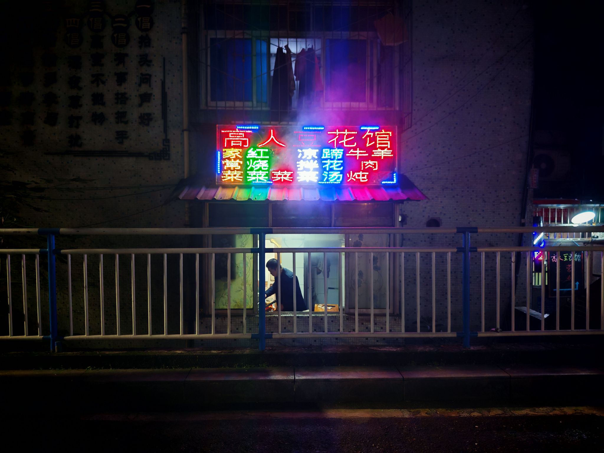 宾馆后门有烤脑花和江湖菜,我往前多走几步看到老小区里面有个居民楼下火锅,还有个高人豆花馆,也不知道他家楼上那个晾衣服的怎么想的,能熏入味了!价格都不算贵,我先吃个双脆和回锅肉试试!