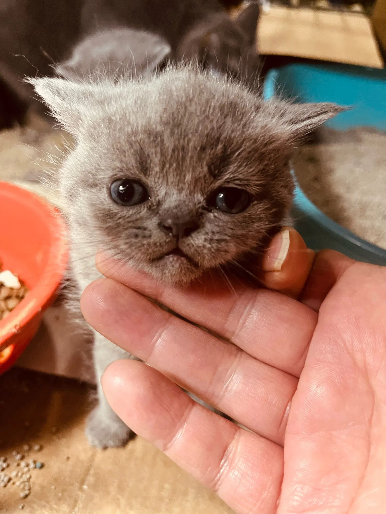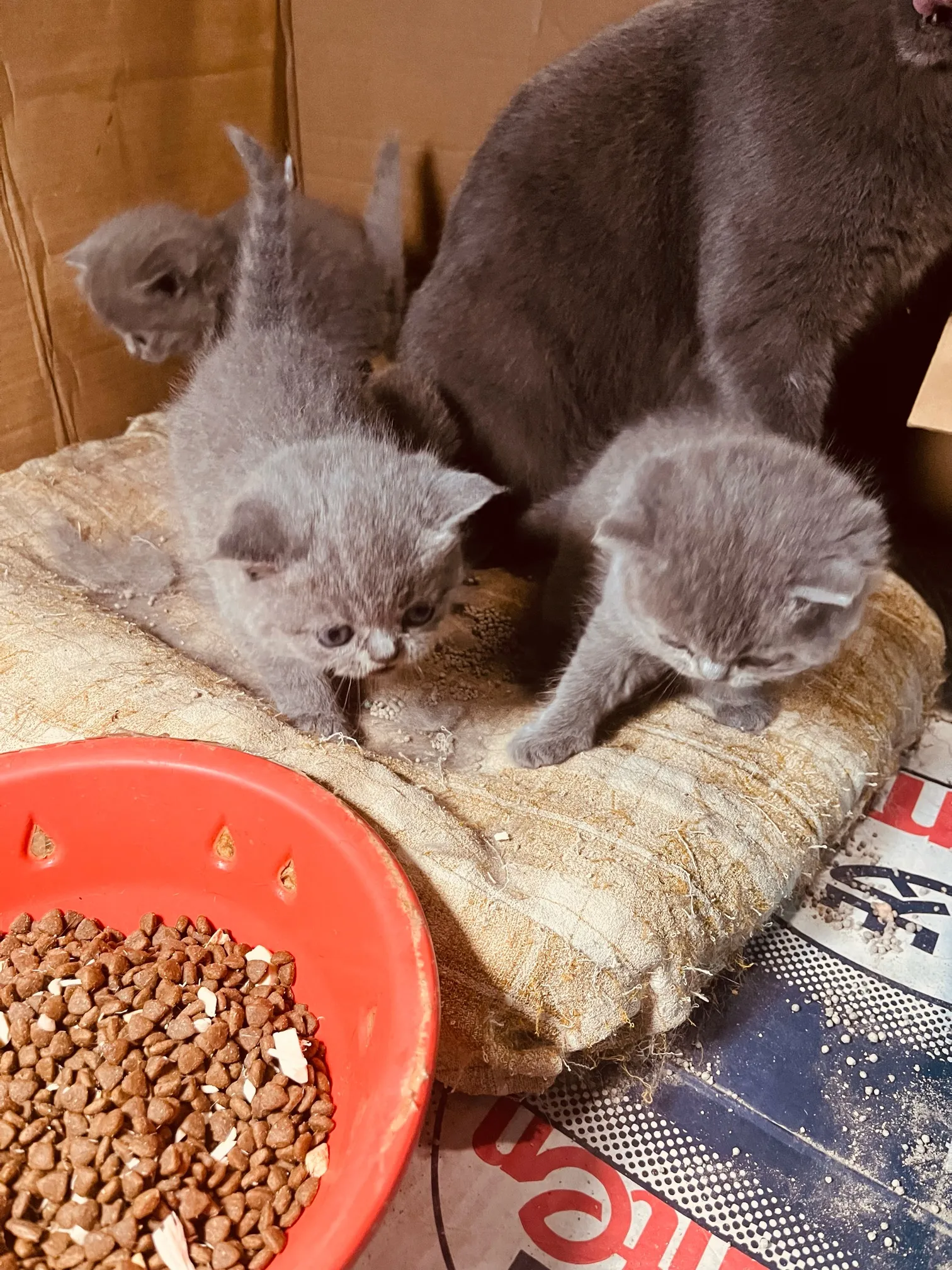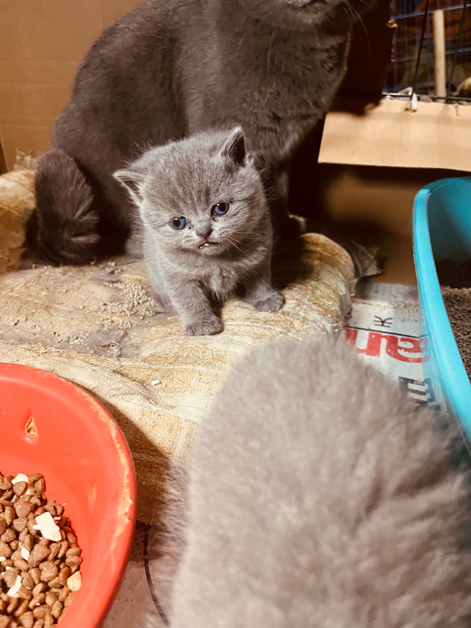 刚满月三只纯种英短蓝猫
