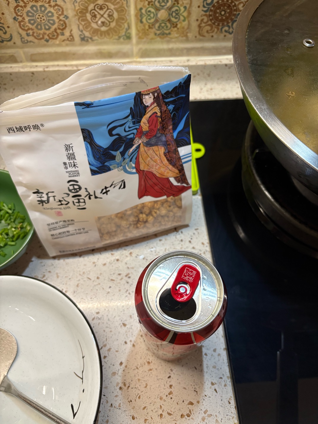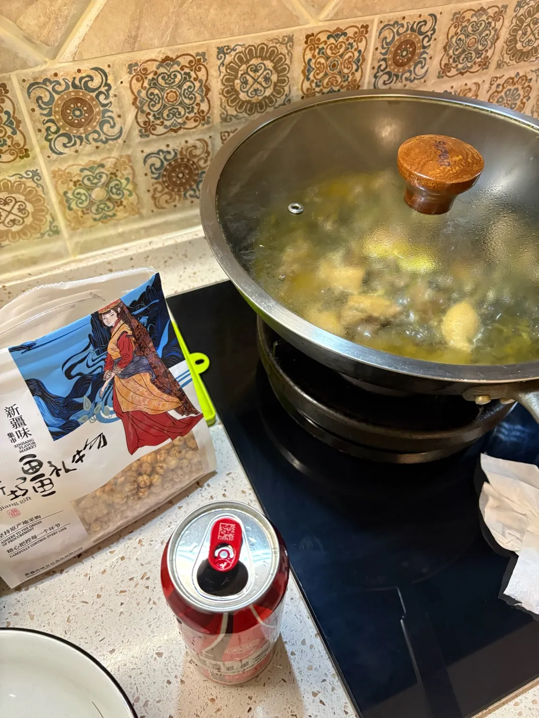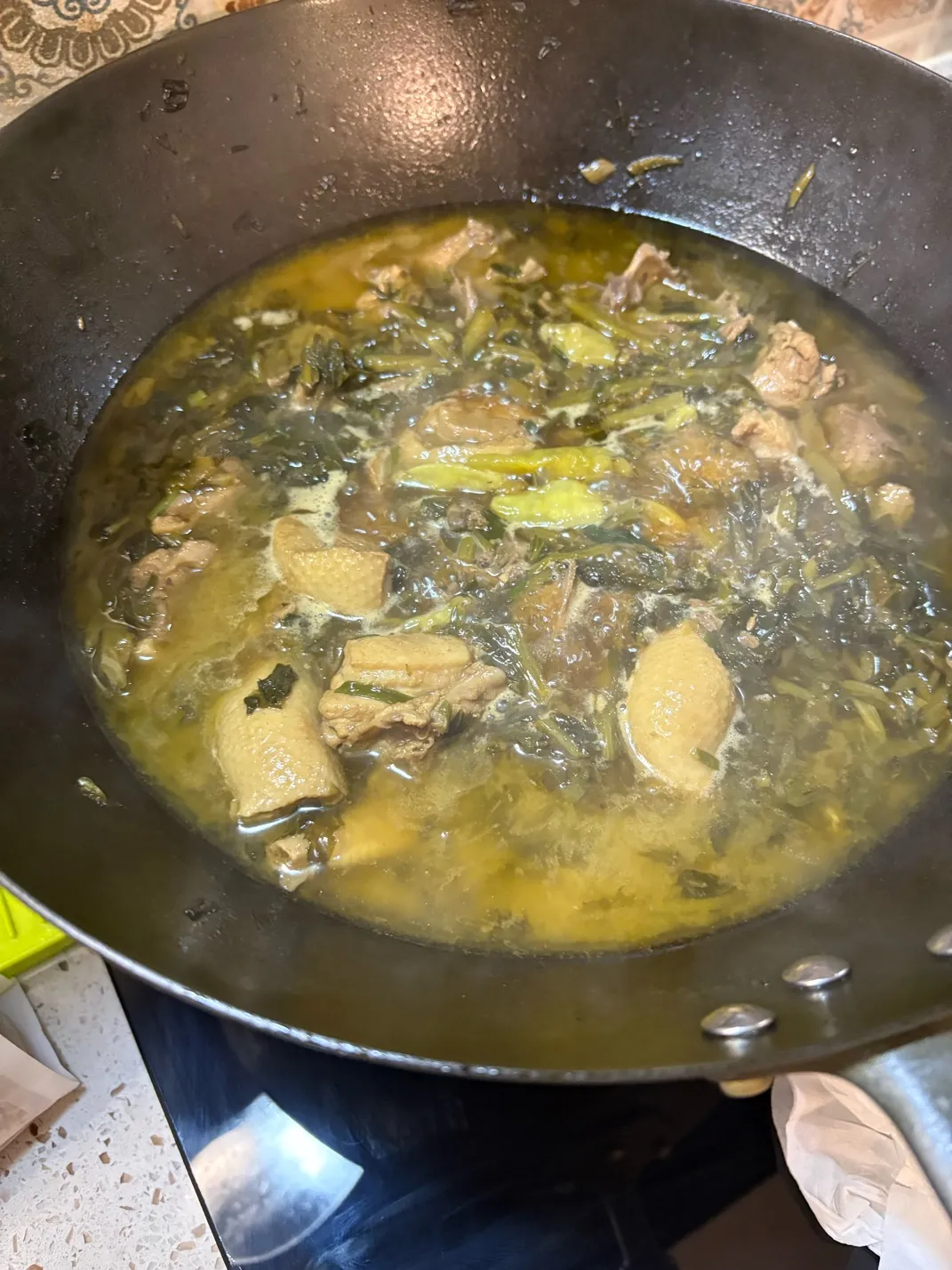 烧好明天中午的雪菜烧麻鸭 ,边烧边喝