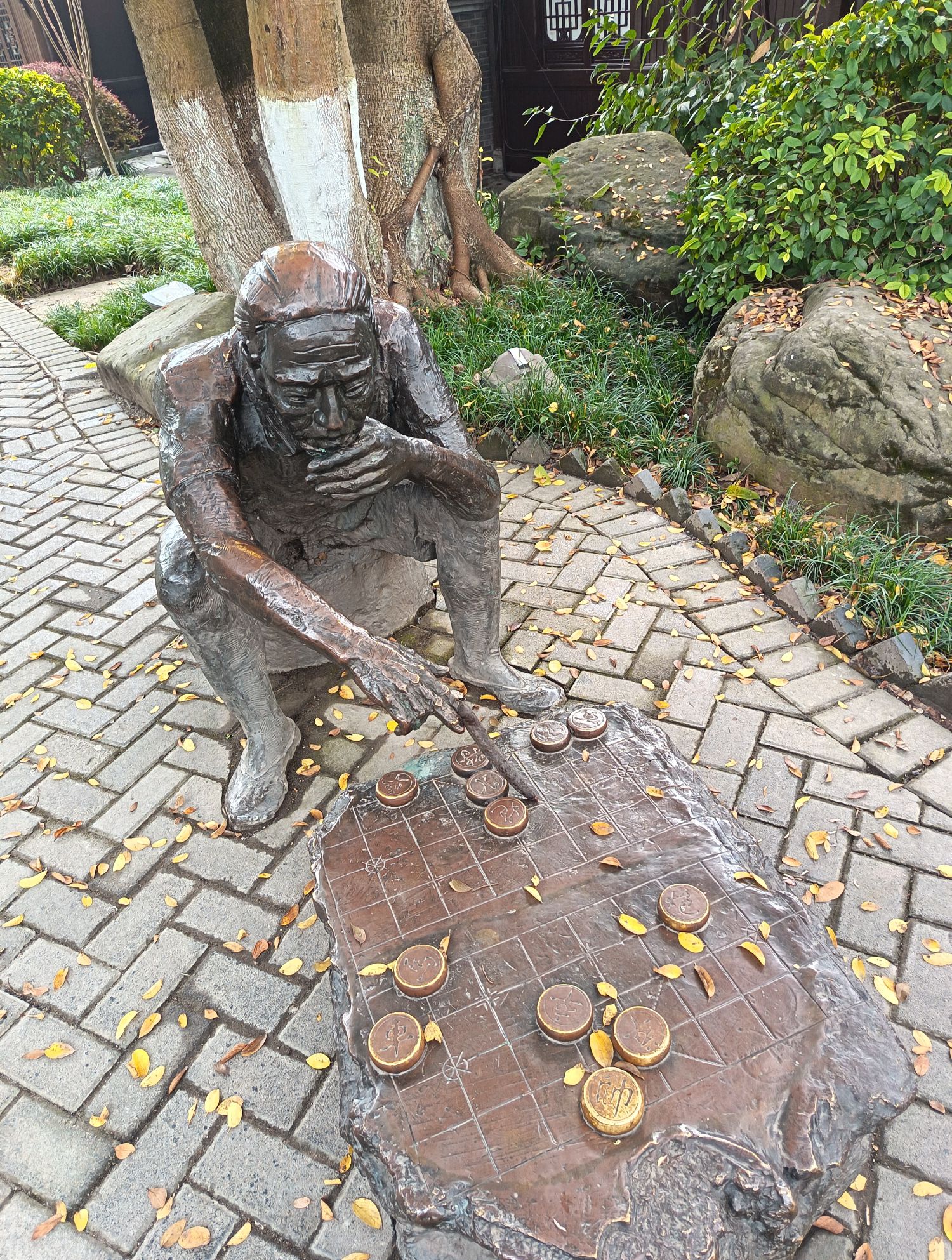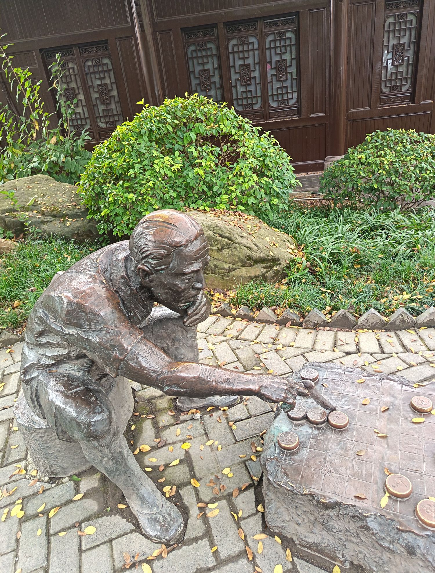 老者在思考最后该走那步棋能胜对方。