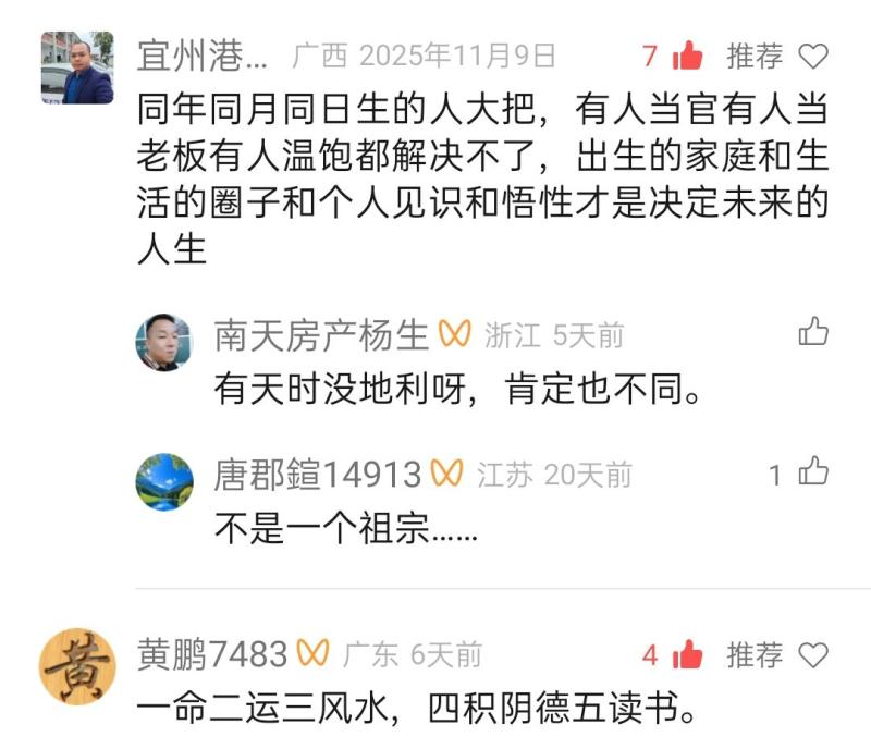 20.天时不如地利,地利不如人和。谋事在人,成事在天;尽人事,听天命。命里有时终须有,命里无时莫强求。社会资源永远有限,每个人的时间、精力和能力都很有限,不可能所有人都能够出人头地、大富大贵,小农思想~小富即安、中产阶级也是一种幸福。家藏亿贯不骄横,人无祸疾才幸福。日不总当顶,家无万世富。三分天注定,七分靠打拼,爱拼才会赢。一定要明白,若人已经全力以赴了但仍然不能出人头地,那就认命吧。要知道大富大贵的背后就是大灾大难,当灾难来了,自身有没有那个实力扛得住,将灾难摆平呢?