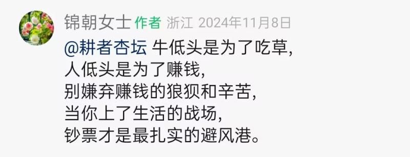 11.一定要学会闷声发大财,发财的事情千万不要到处去嚷嚷, 否则很可能有人会因为羡慕妒忌恨而去断了你的财路,阻碍你成功。俗话说:钱壮怂人胆,有钱可以通神。牛低头是为了吃草,人低头(弯腰)是为了赚钱,别嫌弃赚钱的辛苦和狼狈,当你上了生活的战场,钞票才是最扎实的避风港,有钱才是硬道理,有钱才有底气!