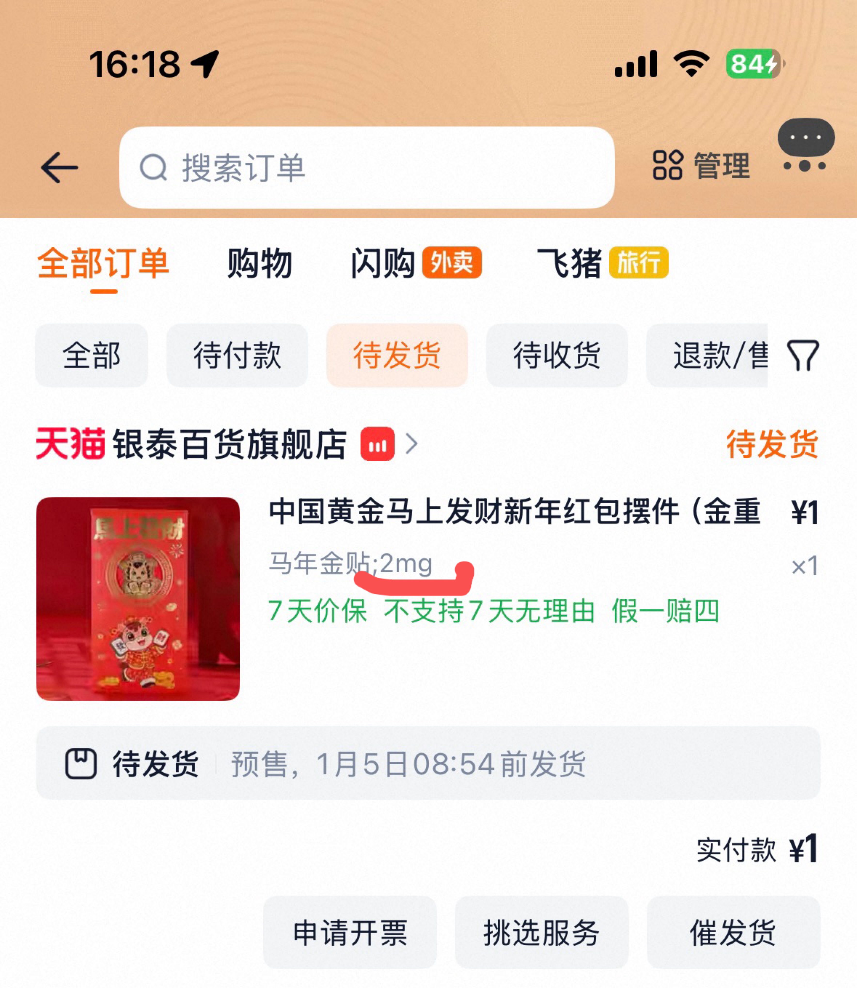 薅了马云5mg黄金!