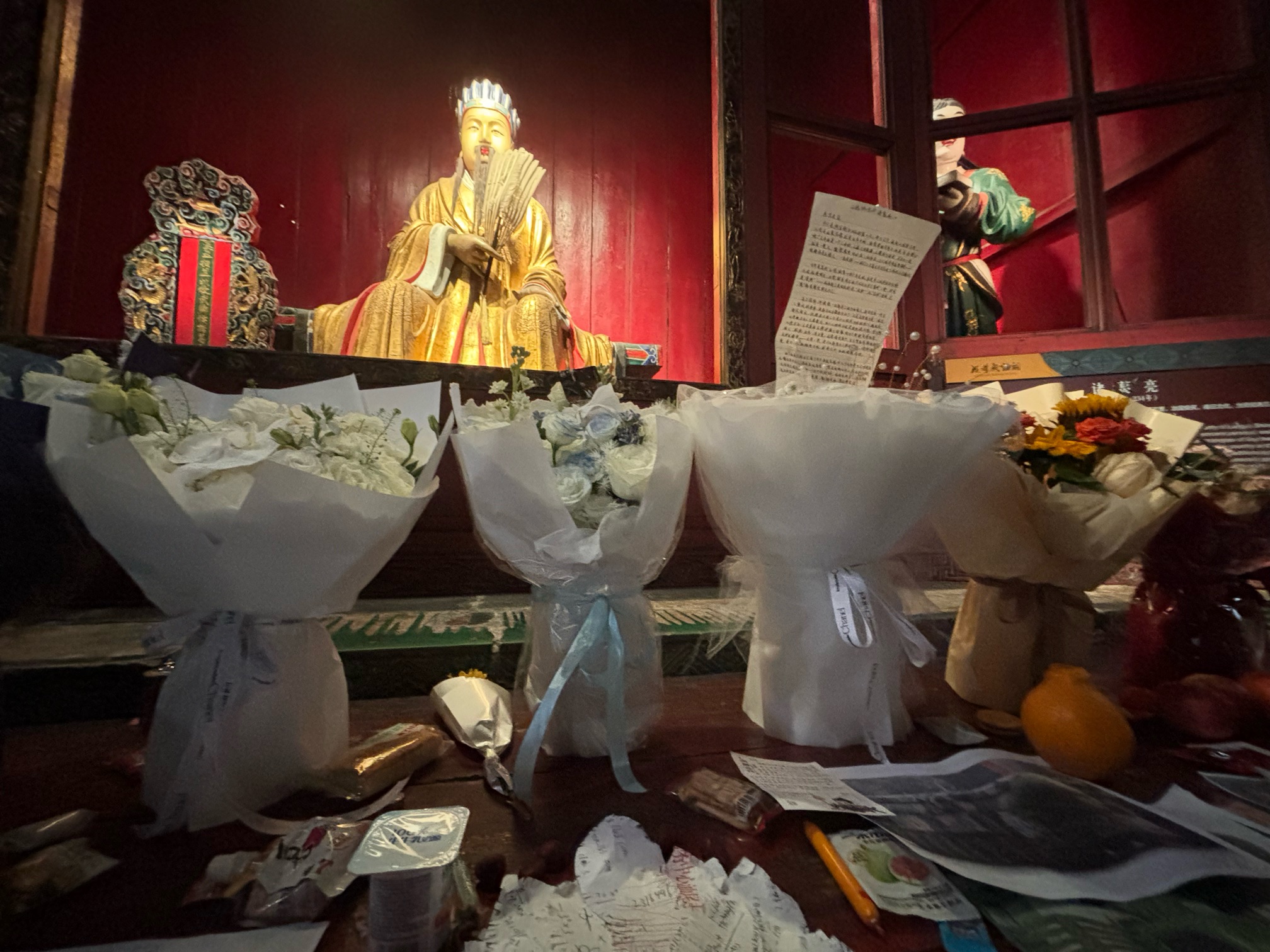 二游武侯祠,听导游讲解刘备和诸葛亮。诸葛亮塑像前常年有人来鲜花,表达了世人对诸葛亮的敬仰之情。有个三绝碑,就是高度评价诸葛亮的“事君之节、开国之才、立身之道、治人之术”四大德行。历史就是大浪淘沙,闪亮的人终被后人敬仰供奉