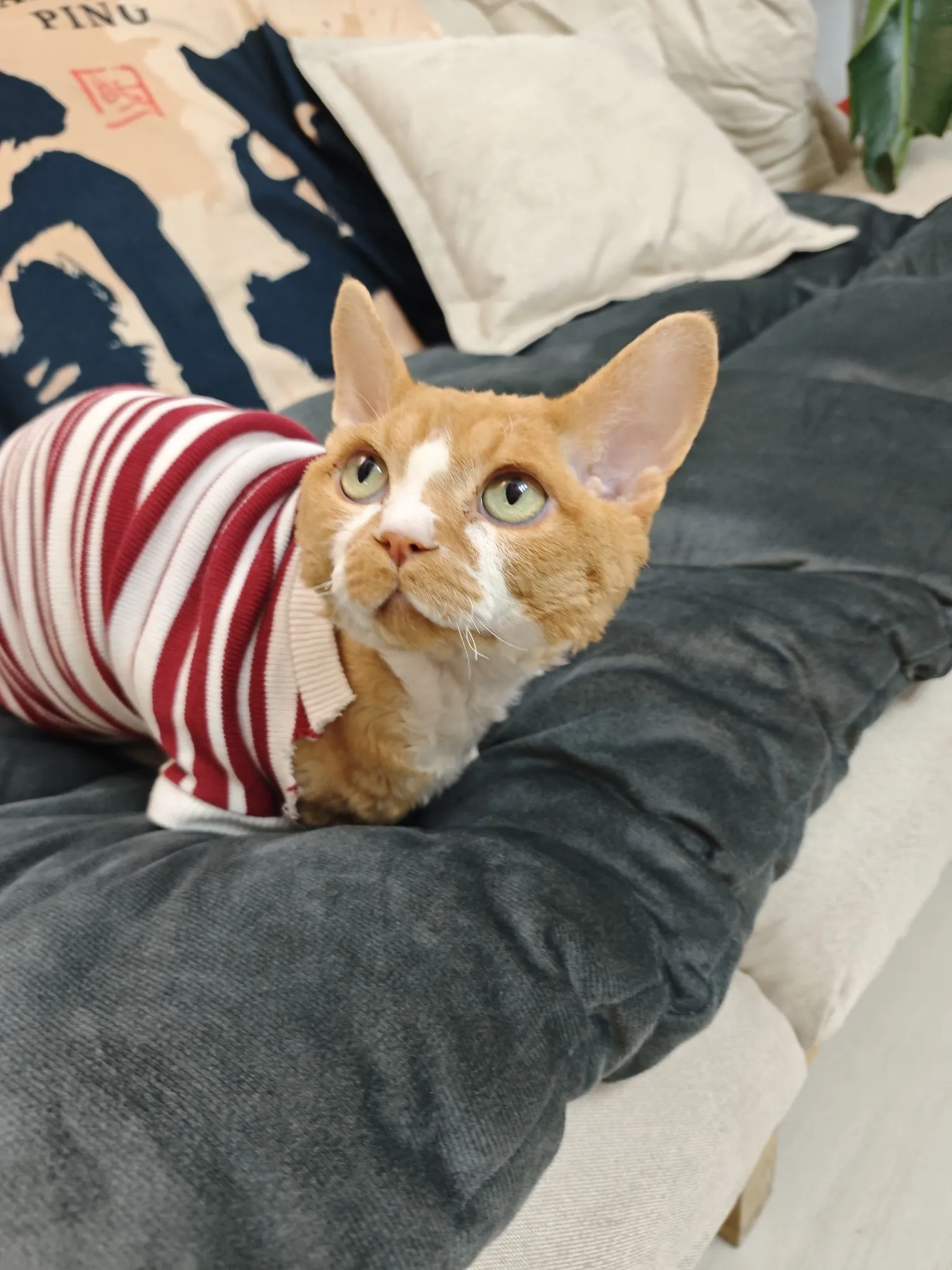 德文卷毛猫 虎斑加白色