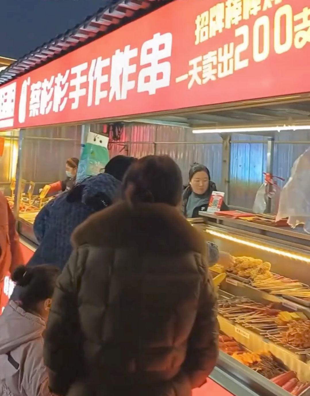 炸制后金黄油亮,整齐码放在托盘里,丰满又实在。刷上秘制酱料,一口咬下,酥香脆嫩在舌尖层层迸发,“嘎嘣” 的酥脆声响更是让人欲罢不能。这道诚意满满的棒棒鸡,一跃成为蔡杉杉手工炸串摊的“王牌”,几乎每天供不应求,最高纪录一天卖出300多只,收获无数食客的青睐。