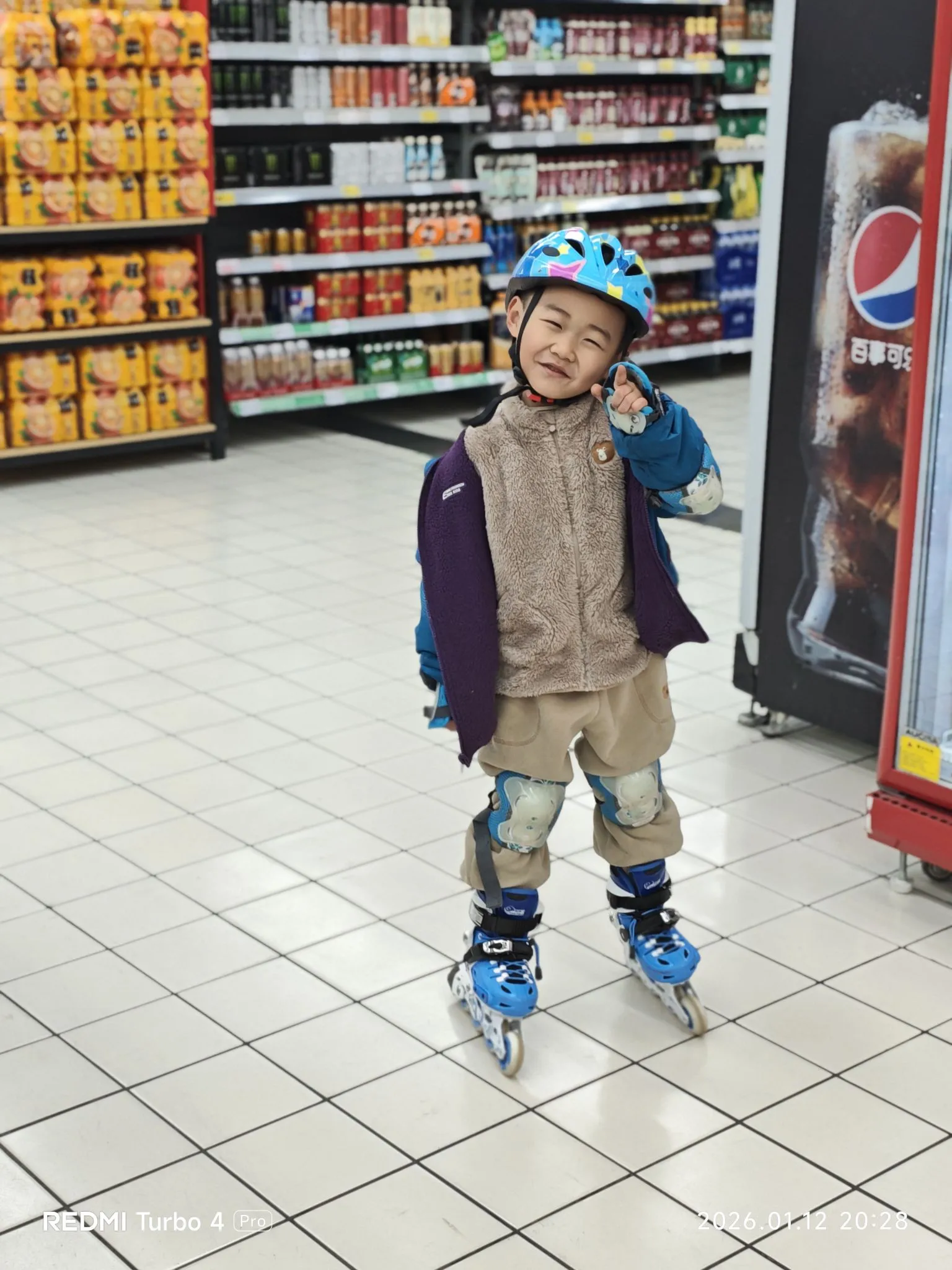 刚学轮滑的小朋友,为了买超市的玩具,一步一步的从家走到了大润发。