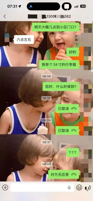 说好6点接人,到点电话不接,信息不回,直接鸽了。