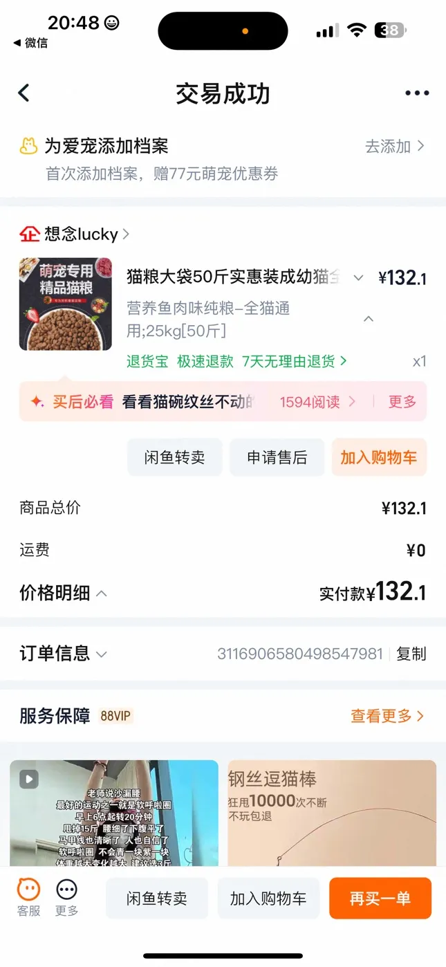 猫咪走丢,全新猫粮低价转让 更多信息