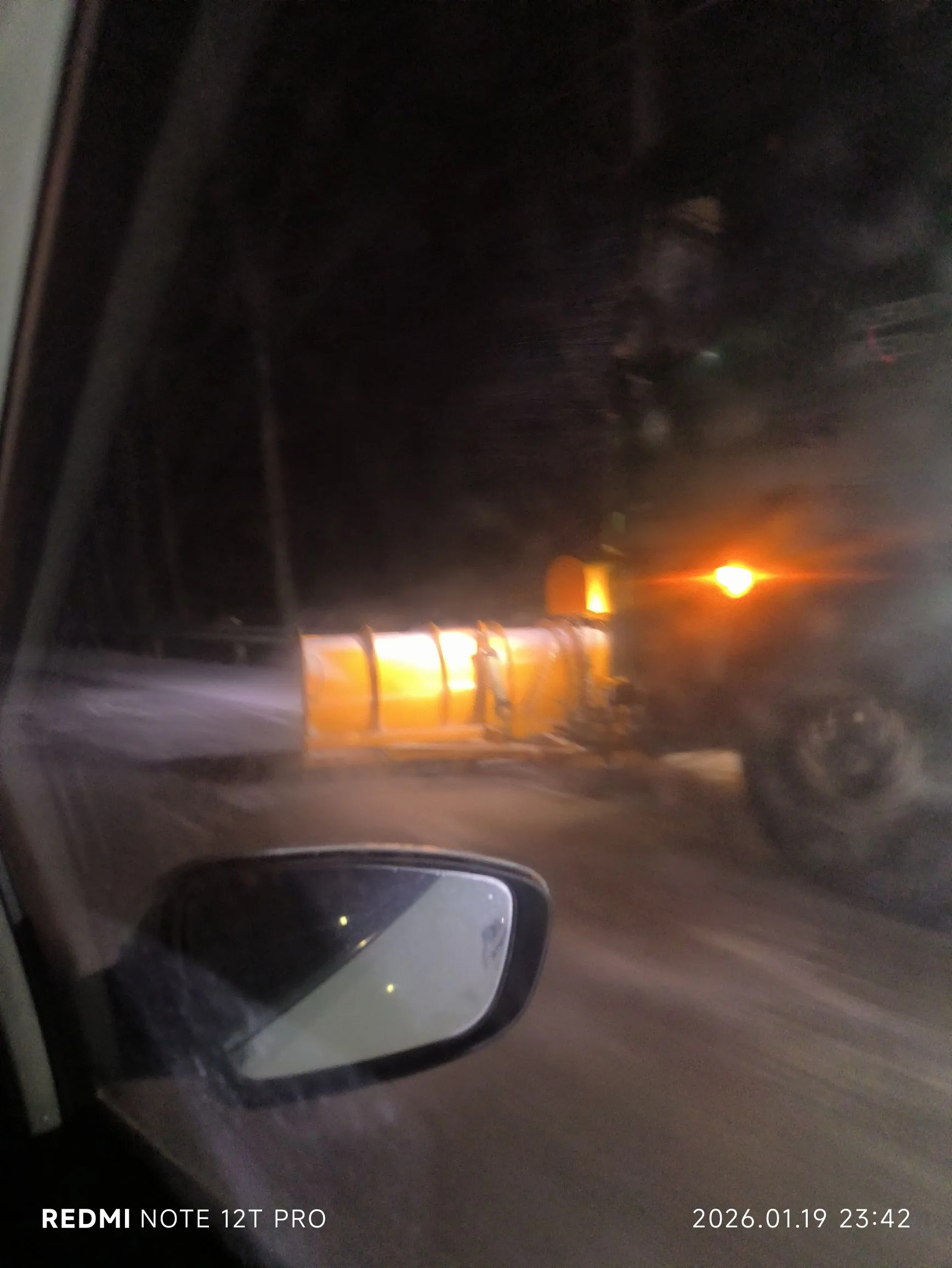 深夜了205国道铲雪车在忙碌