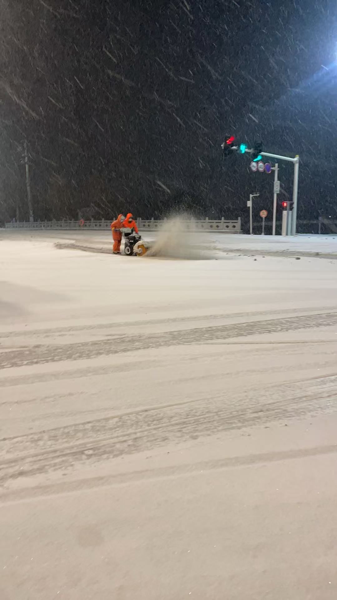 凌晨一点半,洪泽各单位志愿者已经上马路清雪,辛苦了!