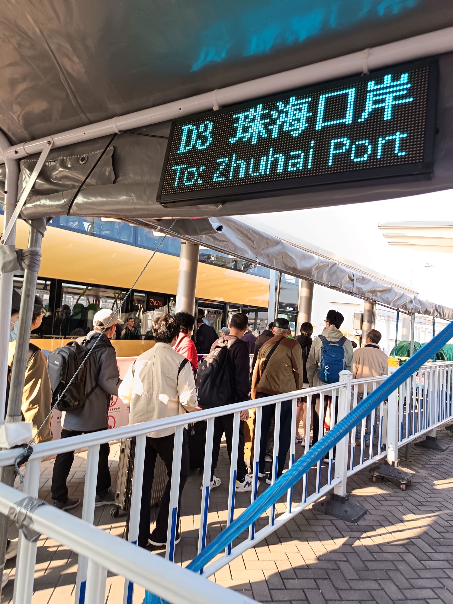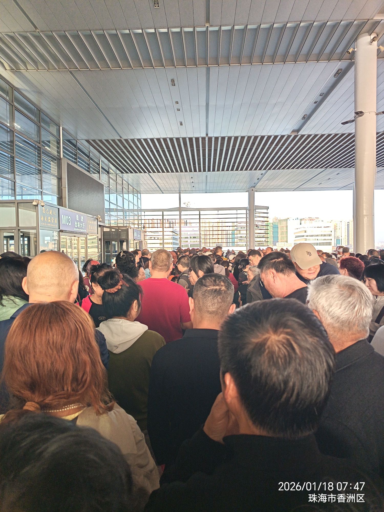 从珠海入澳门海关口岸早晨,超万人等待场景。