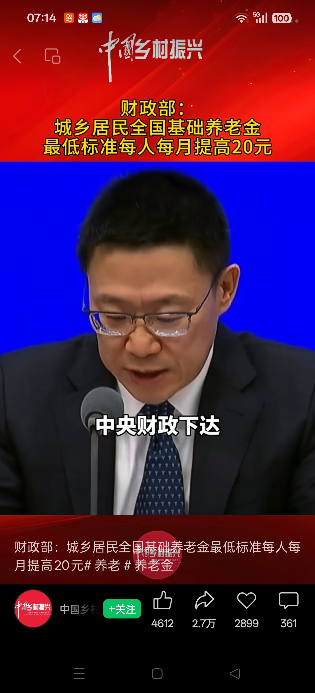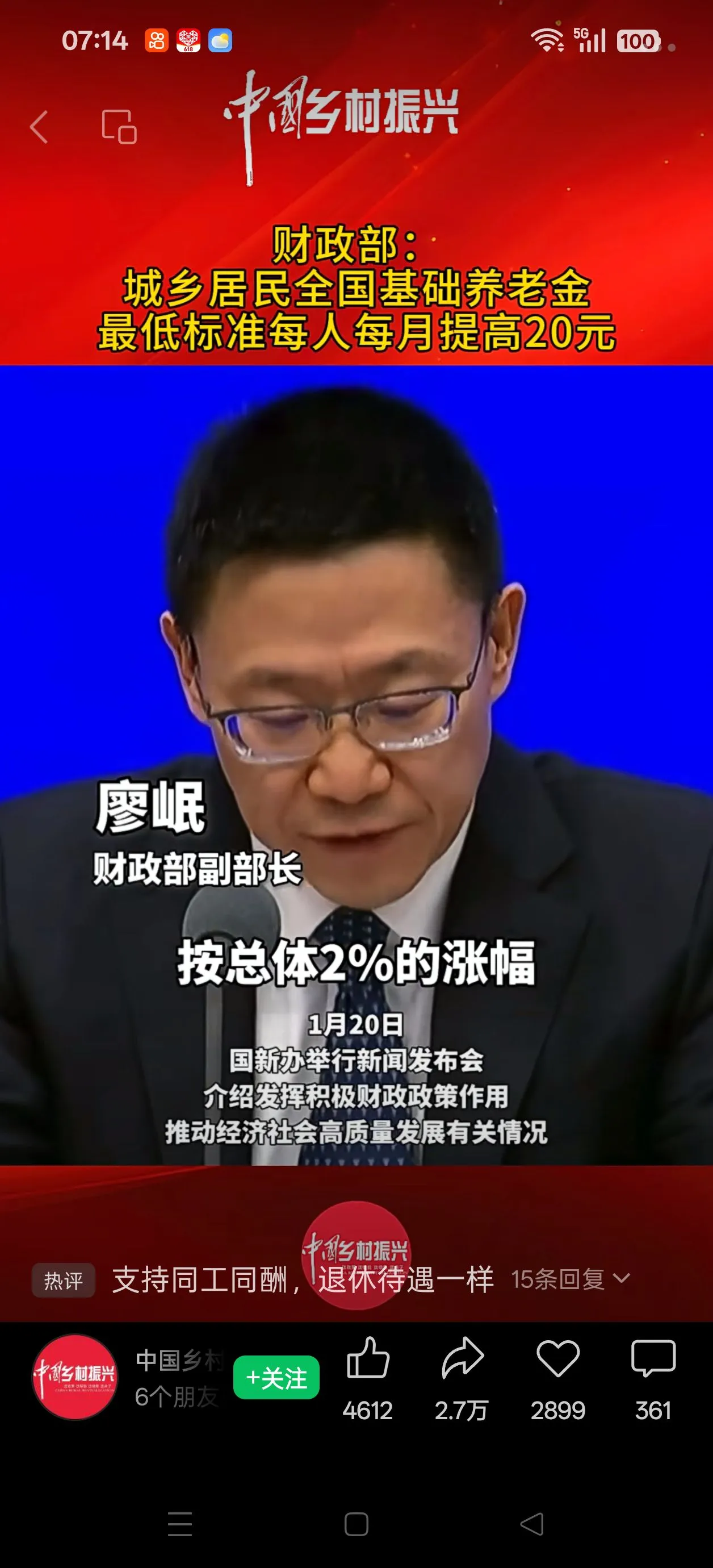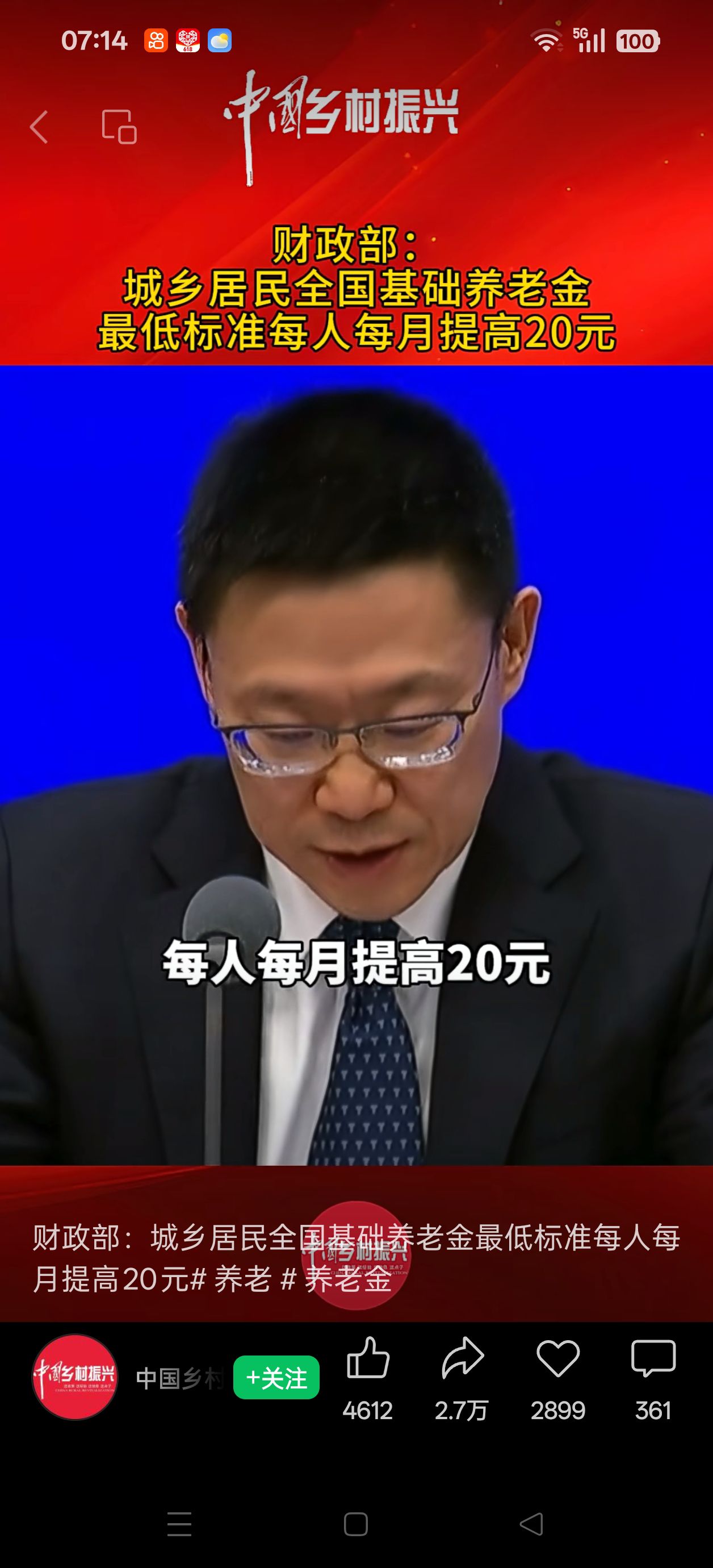 26年农民养老金增加了
