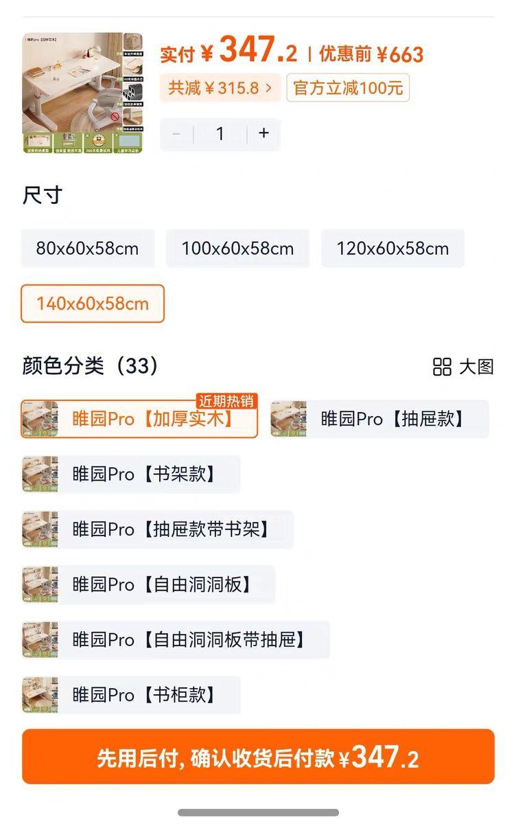 价格:150元 [手动学习桌1.4米]