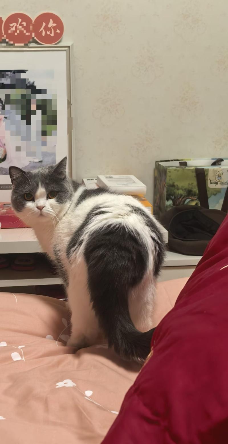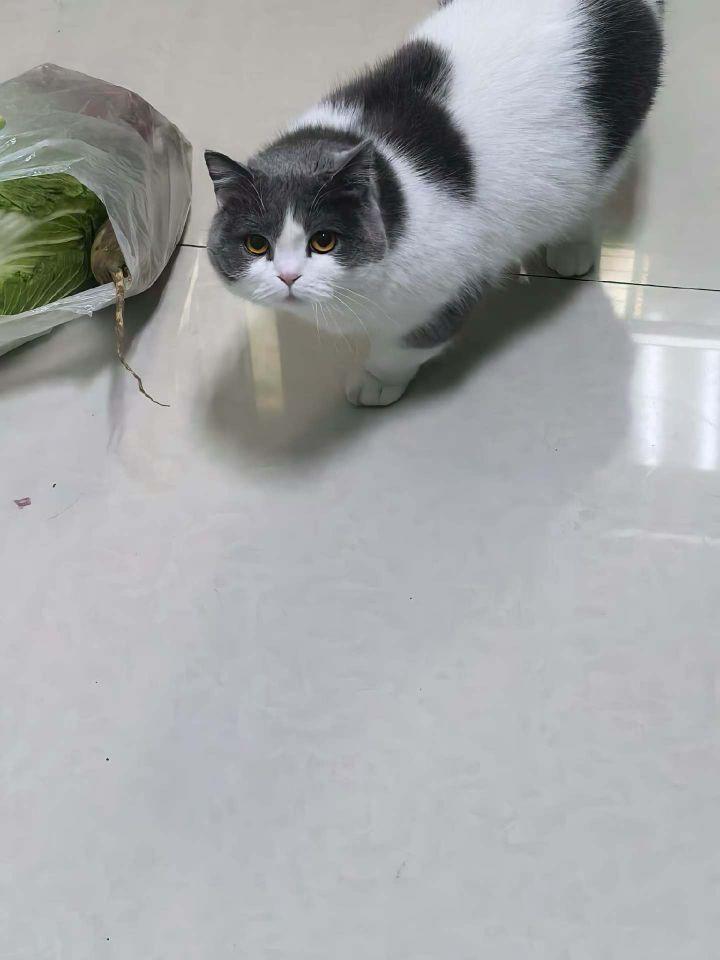 蓝白猫,母,大概10斤左右,名字叫七七,胆子很小,于1.29在家中跑丢