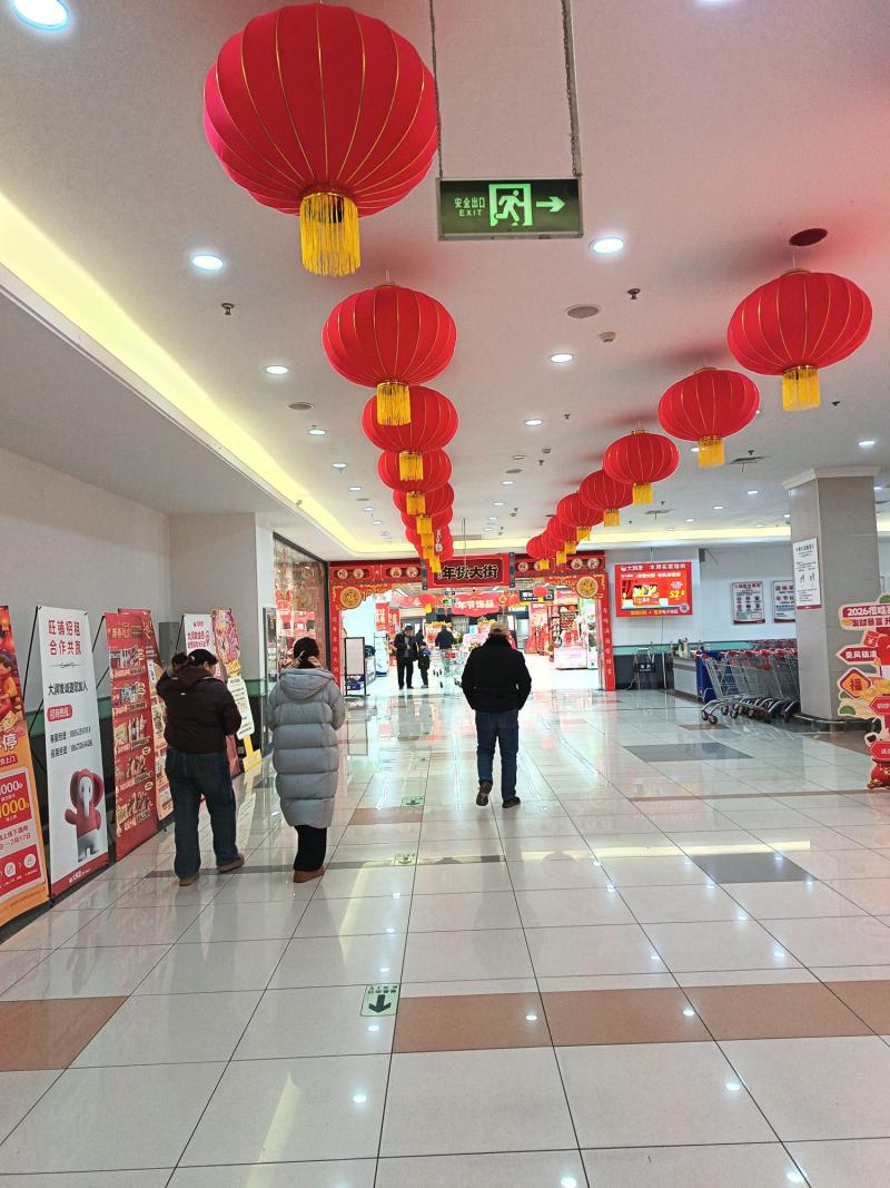 最近,在洪泽大润发超市大厅及营业卖场迎接新年气氛浓厚,到处可见中国红,挂件装饰光彩夺目、鲜艳耀眼,一片喜庆暖阳。
