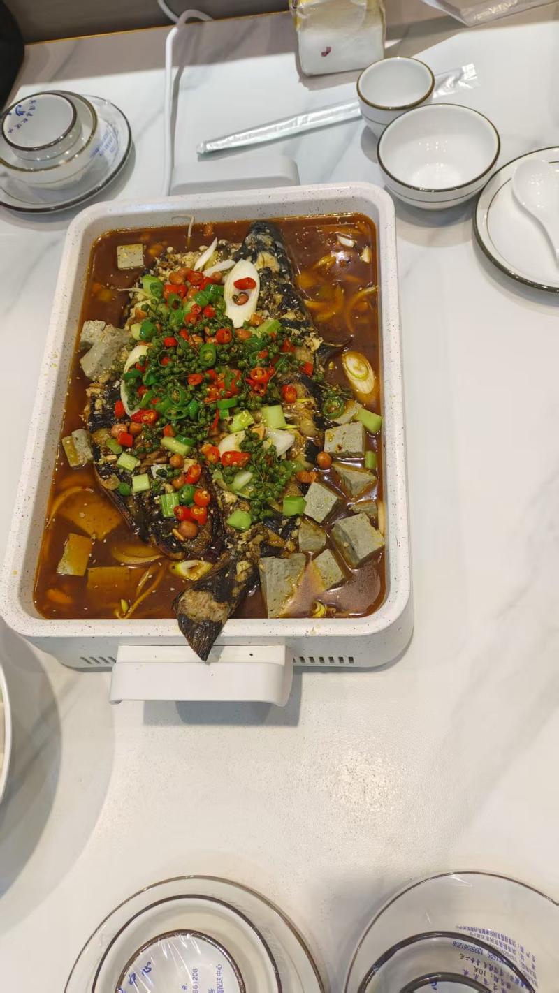 明档鱼池里,清江鱼、黑鱼鲜活游动,食客当面点选、现捞现称,师傅手起刀落间完成宰杀处理,从池中游鱼到炭火炙烤,全程不超过30分钟。活鱼的鲜嫩从不靠调味掩盖,炭火慢烤后外皮焦脆带劲,轻轻一撕便露出雪白鱼肉,汁水顺着纹理缓缓渗出,咬下时肉质紧实弹牙,纯粹的鲜味儿在舌尖炸开,这是冷冻鱼永远无法复刻的本真口感。