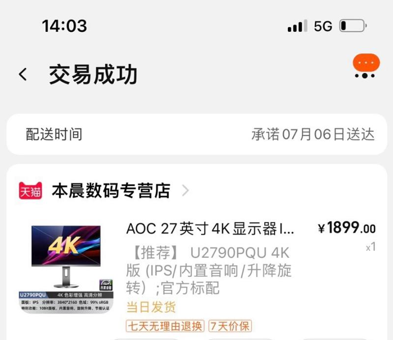 价格:600元  [AOC 27英寸 4K显示器]