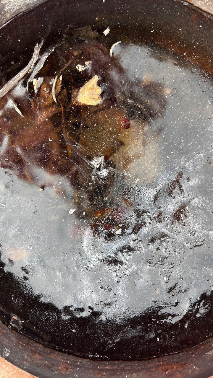 他心急提前把盖在莲缸上的簿膜取了,冬天还在,昨天还零下,今天上楼就看见莲缸结了厚厚的冰,冰下的鱼都不动了