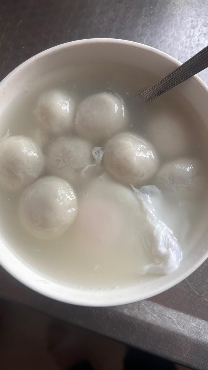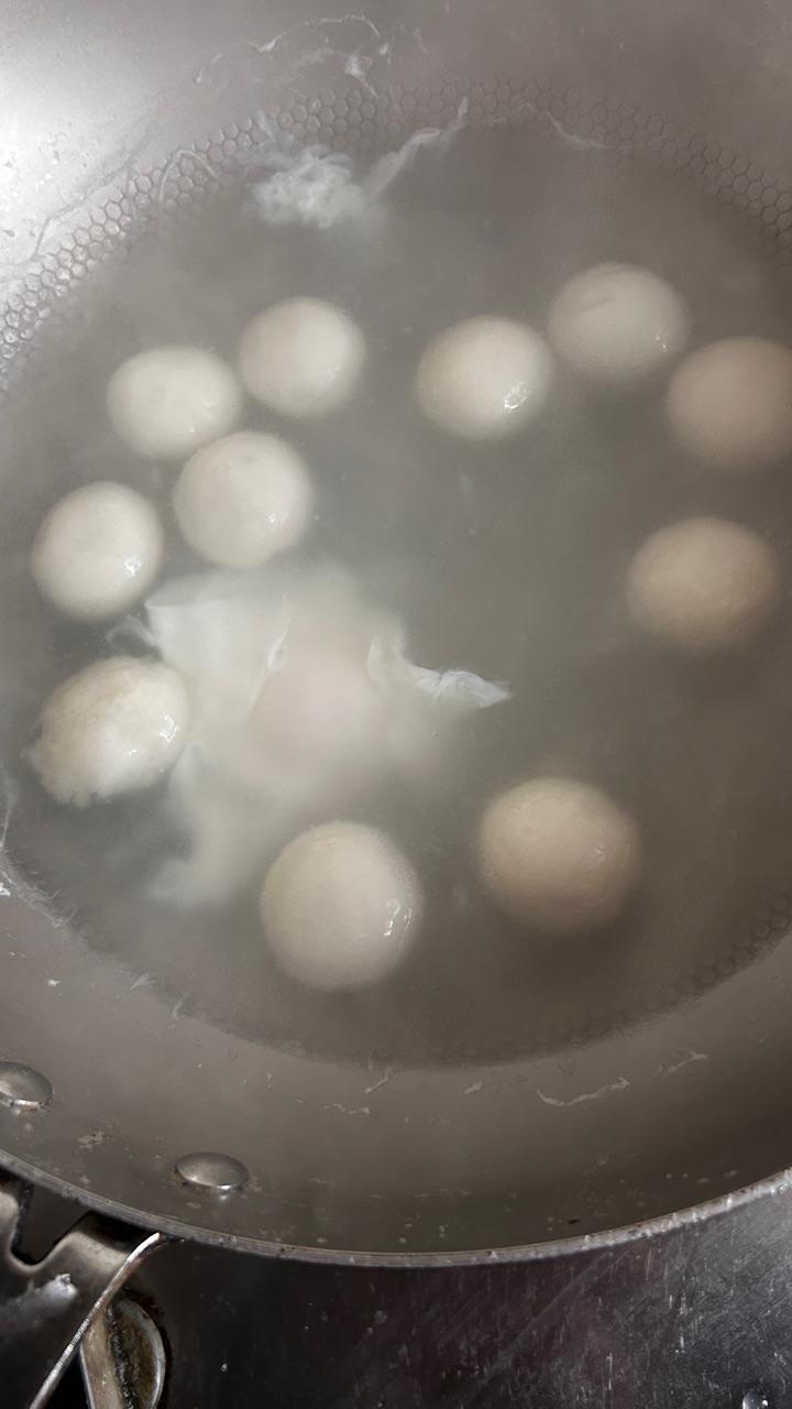 他一早上班了,我自己煮几个汤圆荷包蛋!