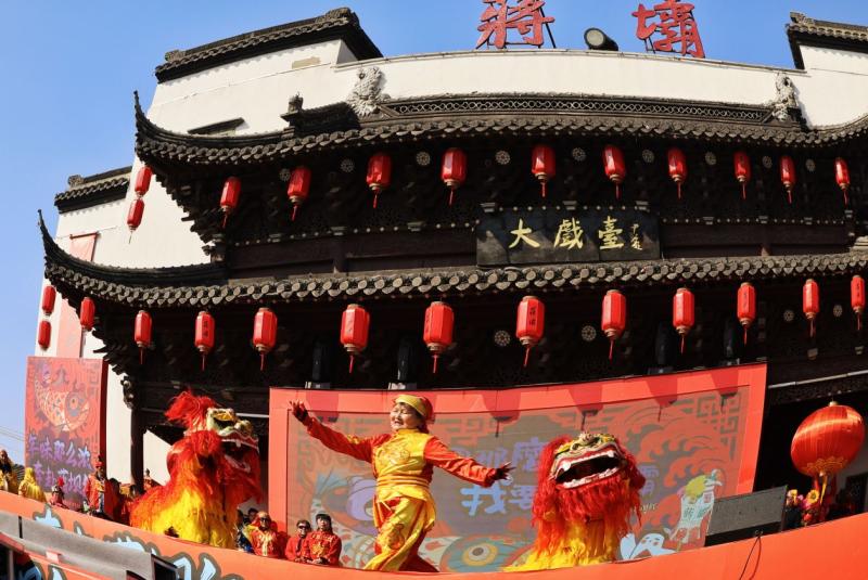 蒋坝大戏台,红灯挂起来,狮跃龙腾贺岁,皆是人间好时节。