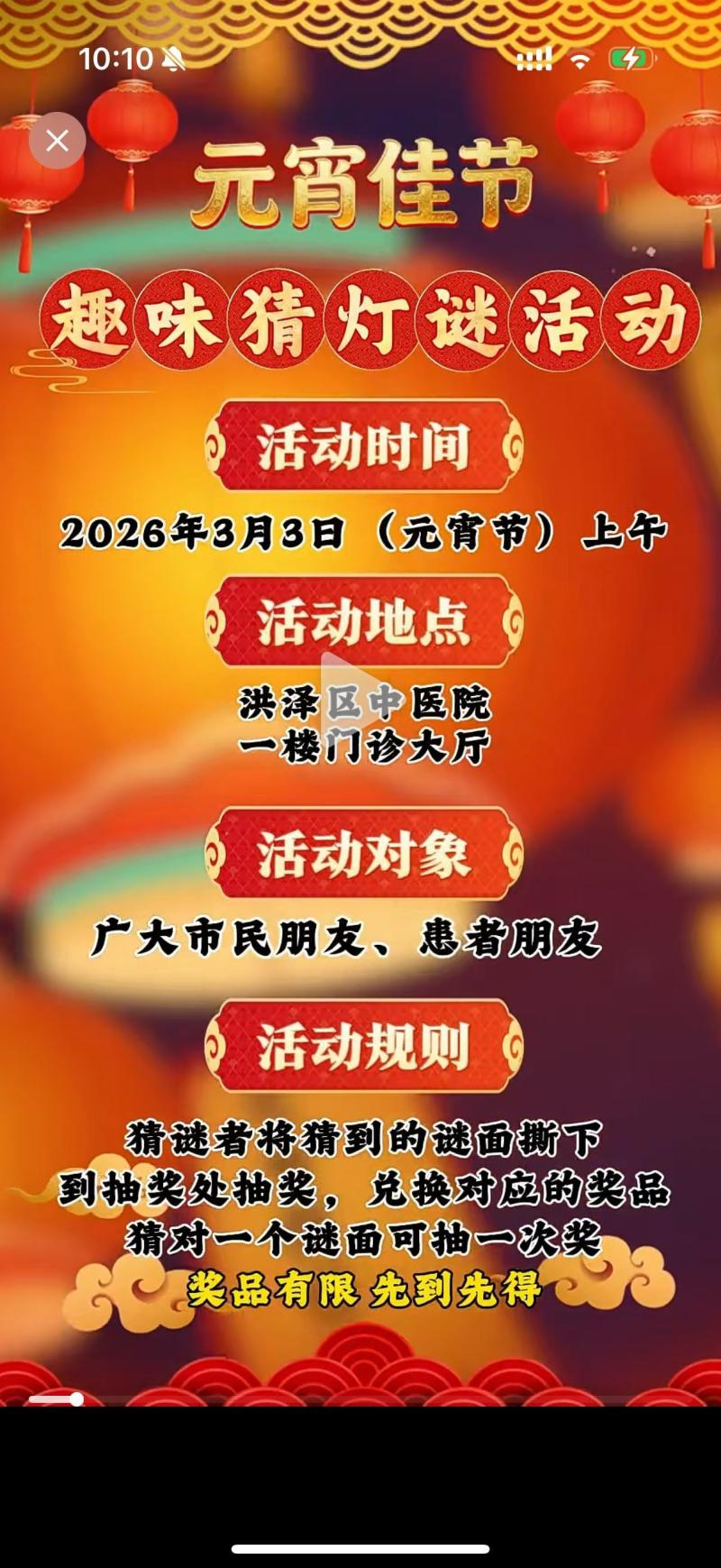 洪泽中医院元宵佳节猜灯谜有礼!