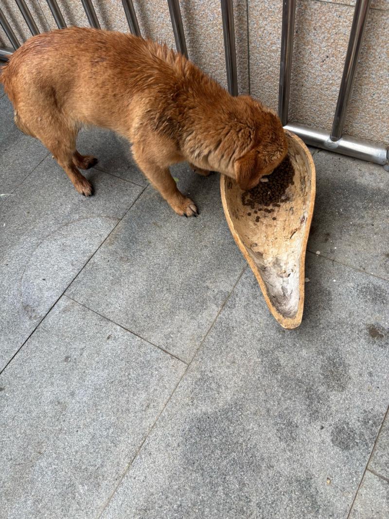 这狗太好玩了,只要我们一到家,准迎接过来,赶紧拿点猫粮喂喂,这下不走了