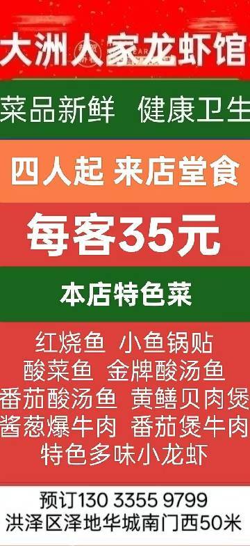 来大洲人家龙虾馆,四人起来店堂食,35元1️⃣客!吃饱吃好!特色祝菜主打等您来品