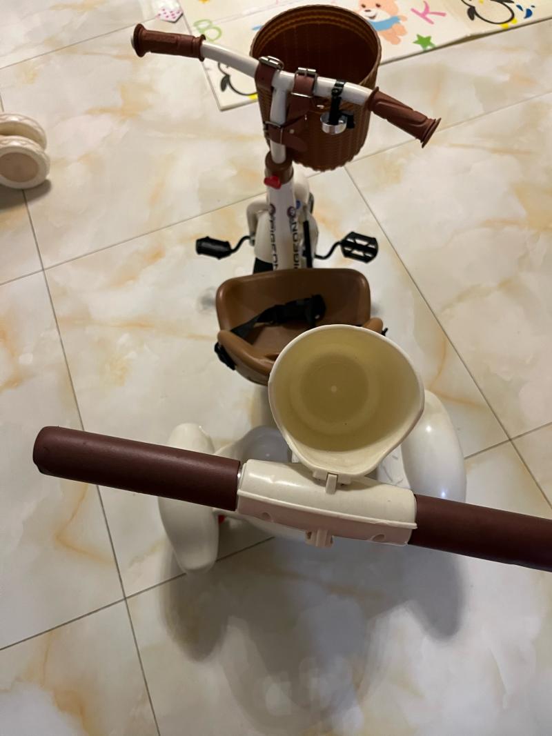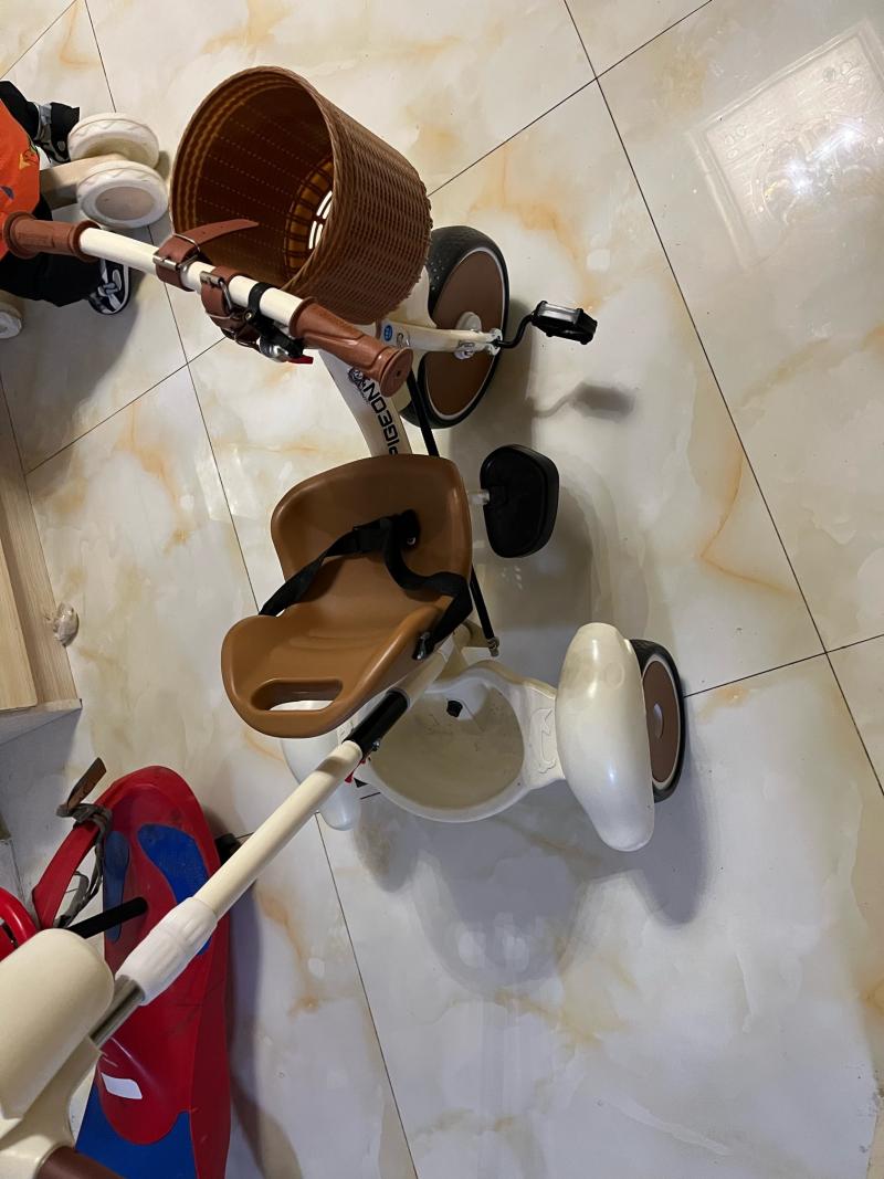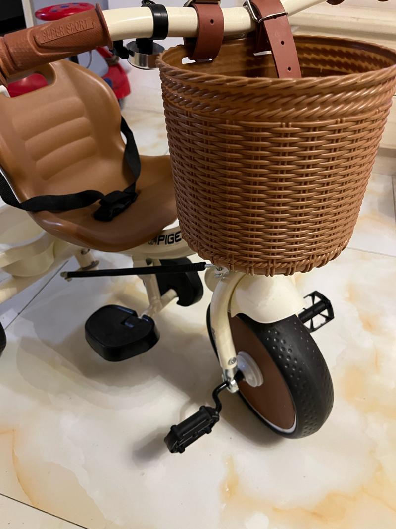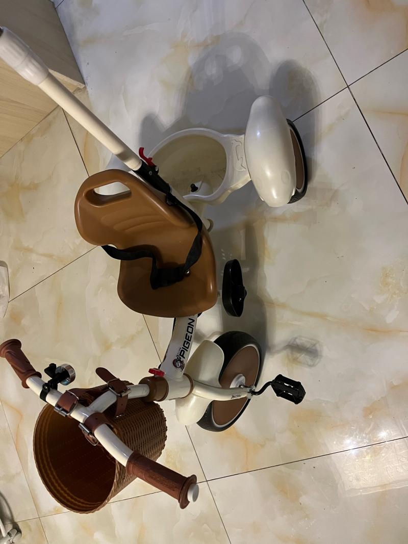 飞鸽儿童三轮车,带推杆、编织篮、座椅、杯架,适合1-6岁宝宝,男女都能用。车子成色还可以,功能都好,推着骑着都顺手,零部件齐全,无异味, 更多信息