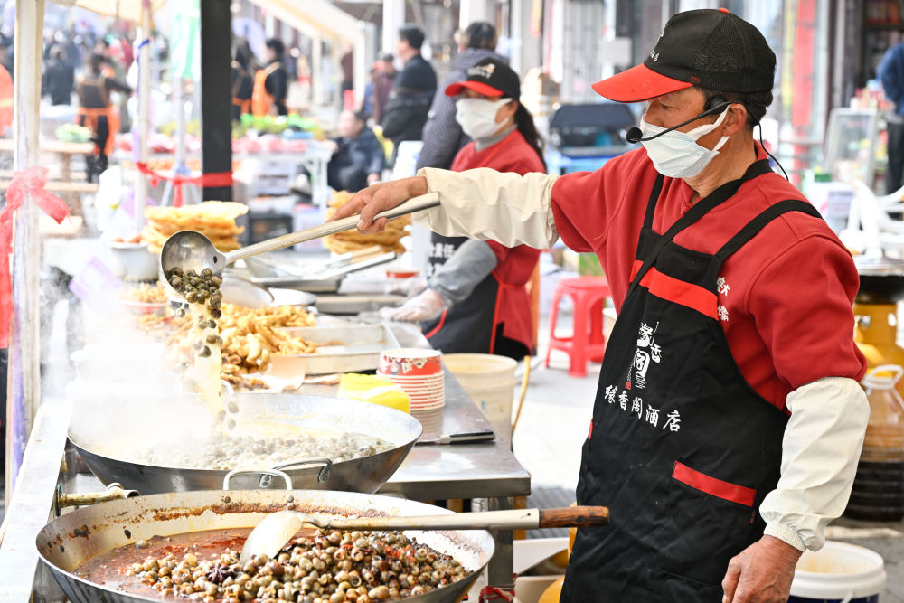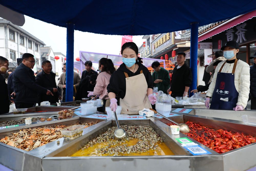3月21日,在淮安市洪泽区蒋坝镇螺蛳美食旅游季市集上,演员在表演节目。新华社发(万震 摄) “明前螺,赛肥鹅”,清明将至,螺蛳迎来最肥美的时节。3月21日,江苏省淮安市洪泽区蒋坝镇螺蛳美食旅游季启幕,大批游客慕名而来,品尝时令春鲜。 近年来,蒋坝镇以“小螺蛳撬动大产业”为发展理念,建成2000亩集育种养殖、加工销售、观光休闲、科普科研等功能于一体的螺蛳产业示范基地,推动螺蛳产业全链条发展。目前,全镇从事螺蛳养殖、加工、销售等超千人,螺蛳特色餐饮门店近40家,年产值达亿元。当地以这道时令鲜香推动农文旅商融合发展,打造沉浸式消费体验,为乡村振兴与地方经济发展注入持续的“舌尖活力”。 3月21日,在淮安市洪泽区蒋坝镇螺蛳美食旅游季市集上,游客在购买、品尝螺蛳。新华社发(万震 摄) 3月21日,游客在淮安市洪泽区蒋坝镇螺蛳美食旅游季市集上游玩(无人机照片)。新华社发(殷潮 摄) 3月21日,在淮安市洪泽区蒋坝镇螺蛳美食旅游季市集上,店员在烧制螺蛳。新华社记者 季春鹏 摄 3月21日,在淮安市洪泽区蒋坝镇一家饭店,家长给小朋友品尝螺蛳。新华社发(殷潮 摄) 3月21日,在淮安市洪泽区蒋坝镇螺蛳美食旅游季市集上,店员在售卖螺蛳。新华社发(殷潮 摄) 3月21日,小朋友在淮安市洪泽区蒋坝镇螺蛳美食旅游季市集上品尝螺蛳。新华社记者 季春鹏 摄 3月21日,游客在淮安市洪泽区蒋坝镇蒋坝老街录制舞蹈视频。新华社记者 季春鹏 摄 这是3月21日拍摄的淮安市洪泽区蒋坝镇螺蛳养殖基地(无人机照片)。新华社发(殷潮 摄) 3月21日,在淮安市洪泽区蒋坝镇螺蛳美食旅游季市集上,店员在售卖螺蛳。新华社发(殷潮 摄) 3月21日,在淮安市洪泽区蒋坝镇螺蛳繁育研究中心,工人分拣螺蛳。新华社发(万震 摄) 转载来源:新华社