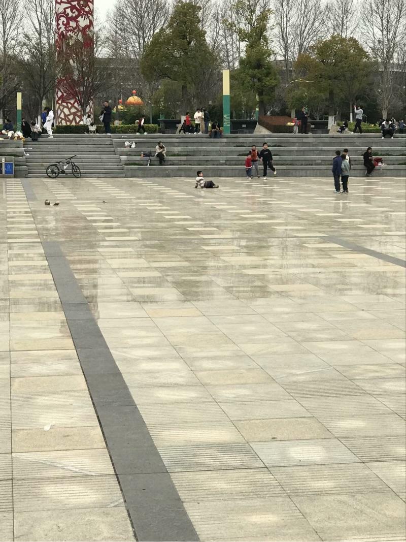 春日天气暖,广场儿童欢。