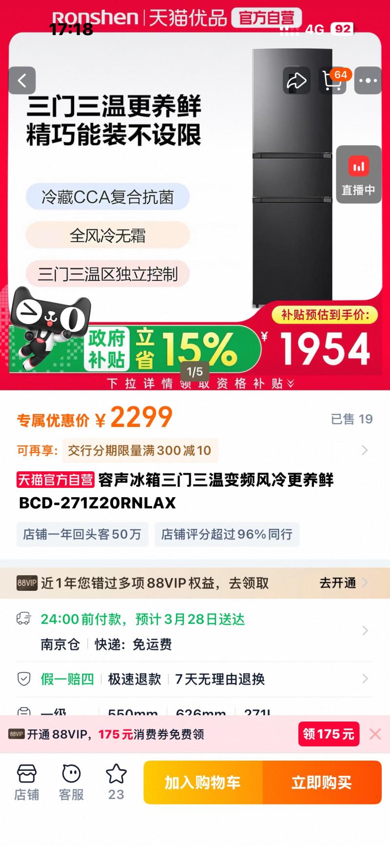 价格:1500元 [容声三开门冰箱]