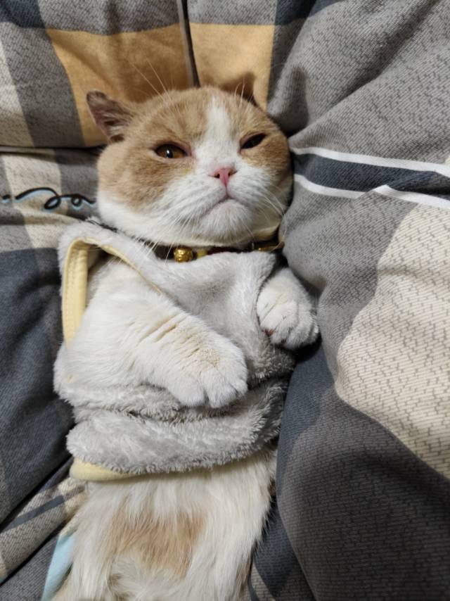 性格:软乎乎的黏人精,脾气超级好,被摸肚子也不生气,会主动凑过来蹭手,偶尔会发出奶声奶气的呼噜声,对稳重的小公猫特别有好感。