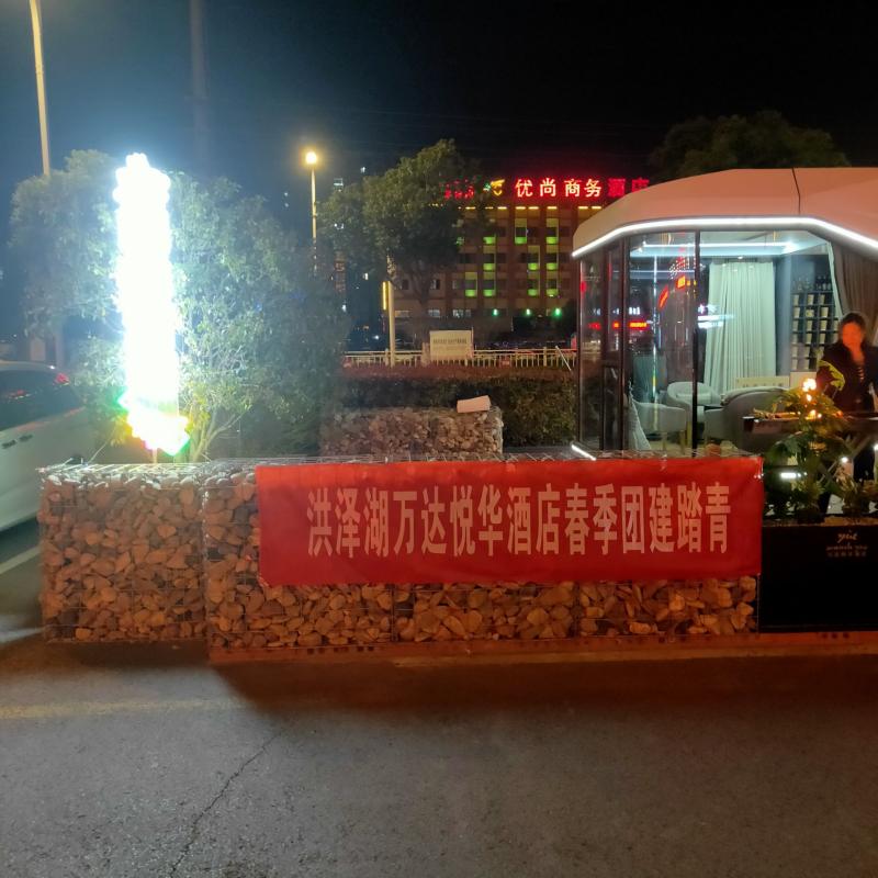 2026年3月25日晚消费时随拍于洪泽经济开发区管委会楼盘对面万达悦华酒店(原美伦精品酒店)大门垛口。