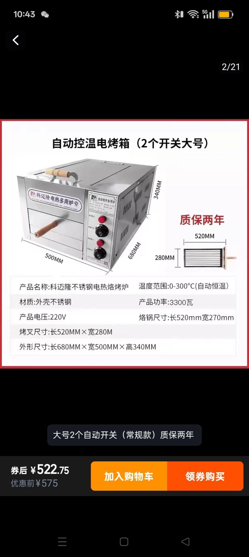 价格:240元 [商业用电烤箱]