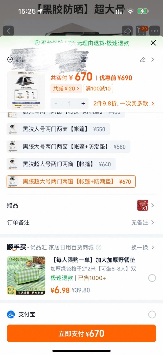 价格:400元  [帐篷]