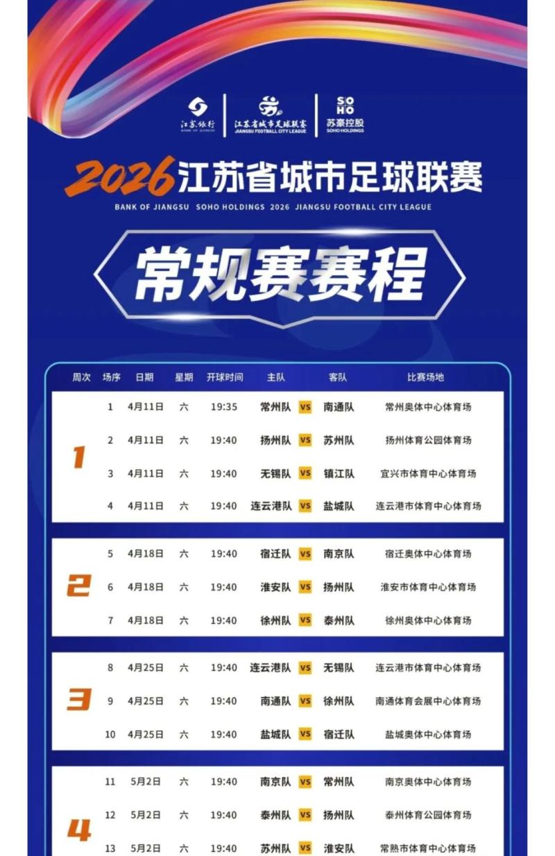2026“苏超”常规赛赛程发布